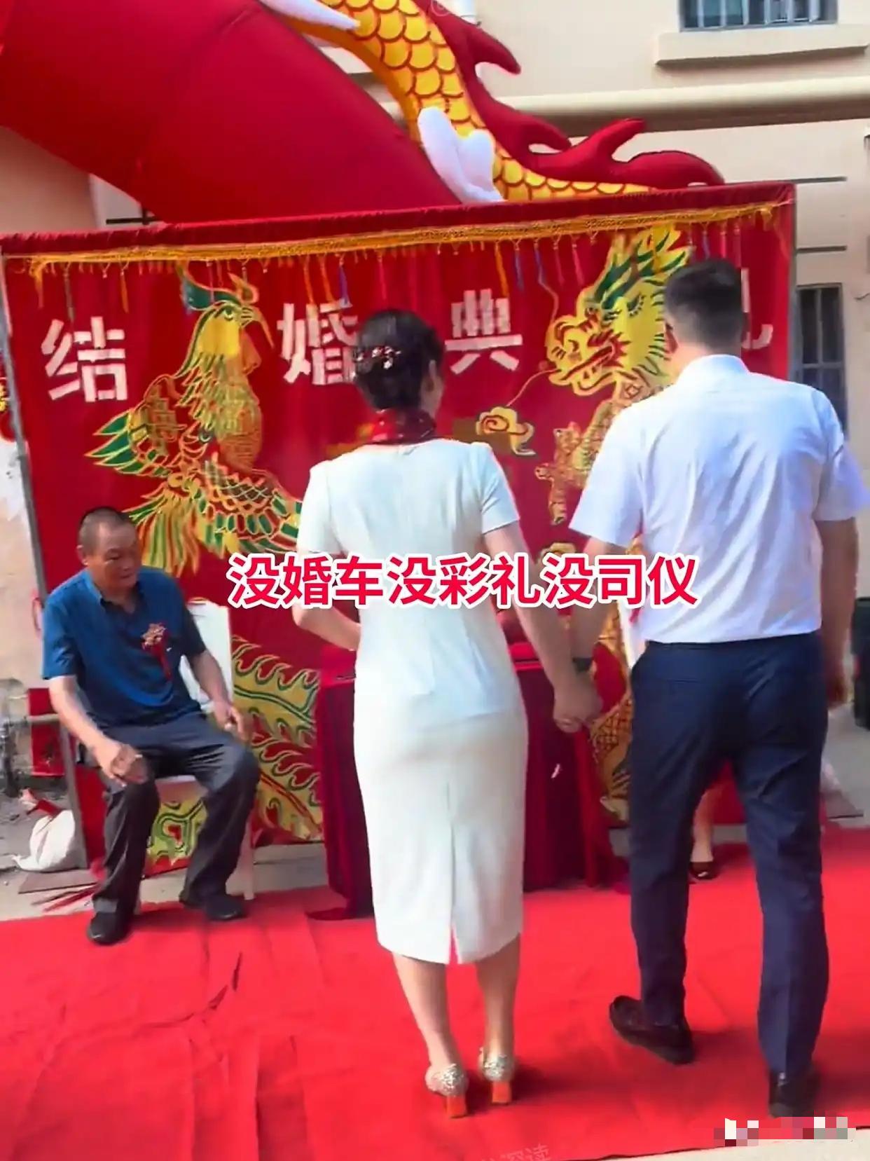 “这个新娘火了!”河北,两名博士举办的婚礼上了热搜,不是因为婚礼有多豪华,而是寒碜到不可思议,没有婚纱和婚车,甚至连司仪都没有,而新娘的一句话让人特别暖心,她说:“这个家庭培养一个博士生不容易!” 咱今儿个唠个新鲜事儿,发生在山东济宁。 俩清华博士结婚,婚礼办得那叫一个简单,没婚车、没彩礼、没司仪,就找俩老人坐门口,背后挂块红布拜了堂。 村里的老人都无法理解,这婚礼办的也太寒酸了,现在谁家娶媳妇不花个四五十万的。这一场婚礼下来一万块钱都用不了。 先说说这俩新人。男的35岁,博士毕业工作6年了;女的是同校博士。他俩谈恋爱到现在,一直没办婚礼。 不是没钱,是觉得婚礼麻烦,不想折腾人花钱。 可双方父母不同意,尤其是男方妈,想着现在年轻人结婚都兴请车队、请司仪,热热闹闹的多好。 小两口就耐着性子跟老人商量:“咱日子是自己过的,形式不重要,别为这事儿累着大伙儿。”拖到现在,老人松了口,婚礼就这么简单办了。 婚礼当天啥样?新郎穿件衬衫配西裤,戴副眼镜,斯斯文文的。 新娘更简单,穿条白长裙,怕不够喜庆,系了条红丝巾。 没买婚纱,没拍婚纱照,连三金都没要。院子不大,俩老人搬个小马扎坐门口,背后挂着提前准备的“龙凤呈祥”红布。 司仪还是让新郎的二大爷客串的,大爷用没有牙说话还有点跑风的喊了四句话:“一拜天地,二拜高堂,夫妻对拜,送入洞房。” 小两口笑着鞠躬,手拉手进了婚房。坐床上还对着镜头比心,娘家姐姐在旁边给他们拍照,满屋子都是笑模样。 这消息一传开,网上可热闹了。”还有山东网友说,自家闺女是中科院研究生,女婿复旦的,结婚连婚纱照都没拍,同事随手照了几张,三金也没要。 可也有人撇嘴:“这也太寒酸了,没个婚礼样儿,看着没意思。” 咱得说说现在结婚的风气。好多人结婚,车要好的,房要大的,彩礼要得多,仪式要排场。 请婚车得挑豪华的,司仪得找能说会道的,上车礼下车礼改口费,名堂多着呢。好像不这么折腾,这婚就结得不体面,一辈子都抬不起头。 可小两口为啥不这么做?人家心里有数。博士学历,工作稳定,物质上不缺啥,更看重的是两个人能不能一块儿过好小日子。 婚礼就是个形式,真过日子还得靠互相包容、一起努力。 想起爱默生说过的话:“婚姻的价值不在排场,在两颗心合不合。” 现在有些姑娘结婚,非盯着物质条件,可感情要是真的,价值观一致,婚礼反而简单。 就像这俩博士,他们不需要用豪华婚礼证明爱情,也不用打肿脸充胖子让别人看。日子是自己过的,踏实比啥都强。 再说他俩父母。男方妈一开始也想按老规矩办,后来被小两口说动了。女方的父母很通情达理,支持女儿女婿的这种做法。”这才是明事理的长辈。 结婚是两个家庭的事,但过日子是小两口的。 现在好多年轻人,办一场婚礼,把男方的家底花的底朝天,甚至有的让父母负债累累。 可这俩博士用行动告诉大家:好的婚姻,不是靠彩礼厚不厚、婚礼大不大,是能一起面对困难,互相扶持着往前走,日子指定甜。 就像梭罗说的,“真正的富足不是有多少钱,是有不被外界定义的勇气”。他俩就不被“结婚就得有排场”的观念捆住,活得自在。 有人喜欢热热闹闹,有人就想简简单单。只要小两口一条心,日子肯定能过好。 希望更多人能明白这个理儿。结婚不是给别人看的戏,是自己要守的一生。 少点虚头巴脑的讲究,多点踏踏实实的陪伴,日子才能越过越有滋味。