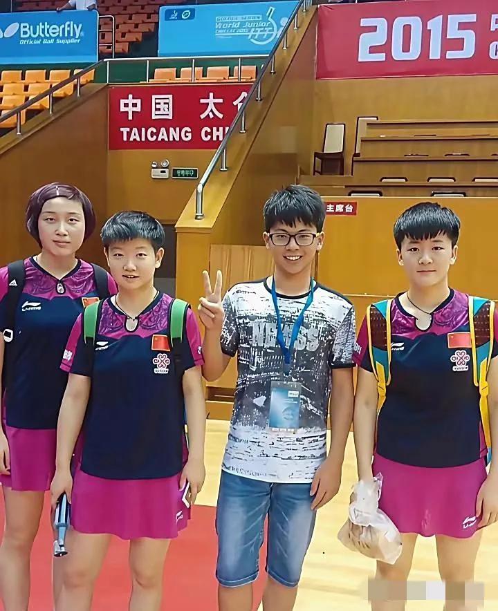 瞧,2015年的孙颖莎竟然穿着玫红色的小裙子,那利落的发型,圆嘟嘟的面庞,那如虹