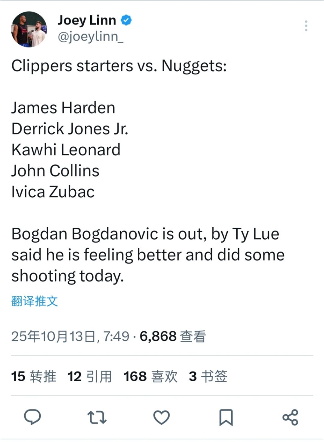 快船三大内线,大战约基奇,太出色了!1.祖巴茨:出战23分钟,拿到11分10 【13评论】【14点赞】 尼古拉·约基奇 伊维察·祖巴茨 快船队 德克·诺维茨基 国际当红篮球明星 体育密探 2025-10-13