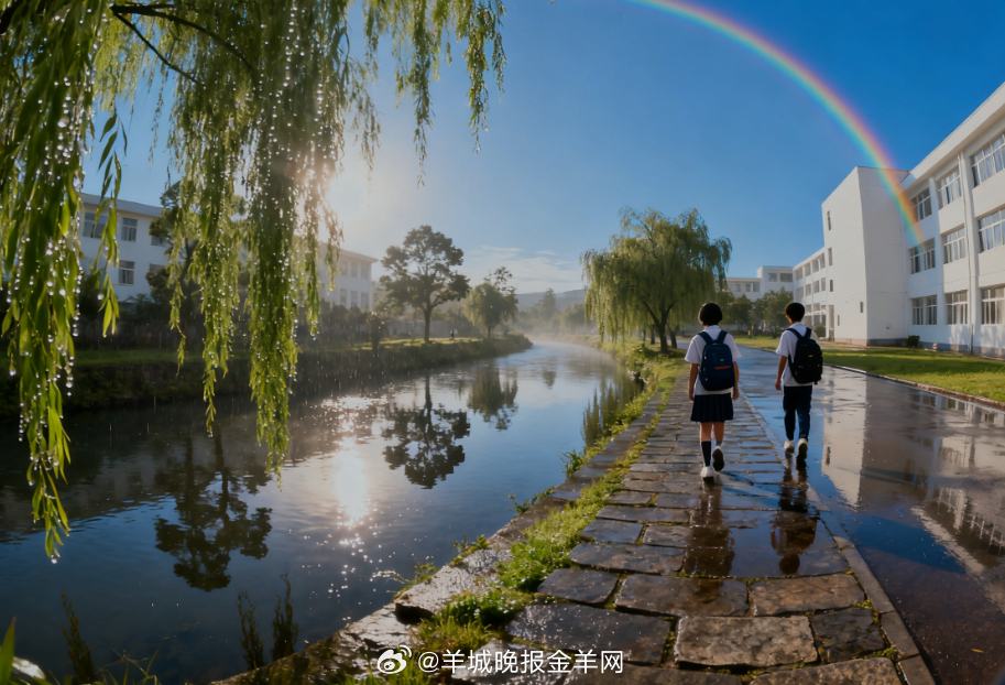#早安[超话]# 彩虹的碎光挂在蓝天边,小河面晃着云朵的影子,踩过沾着水珠的青草时,连风都带着甜丝丝的潮气。书包带蹭过衣角,沿着河边往前走吧,这刚洗过的明亮晨光,正陪着你往课堂的方向,轻轻跑呢。