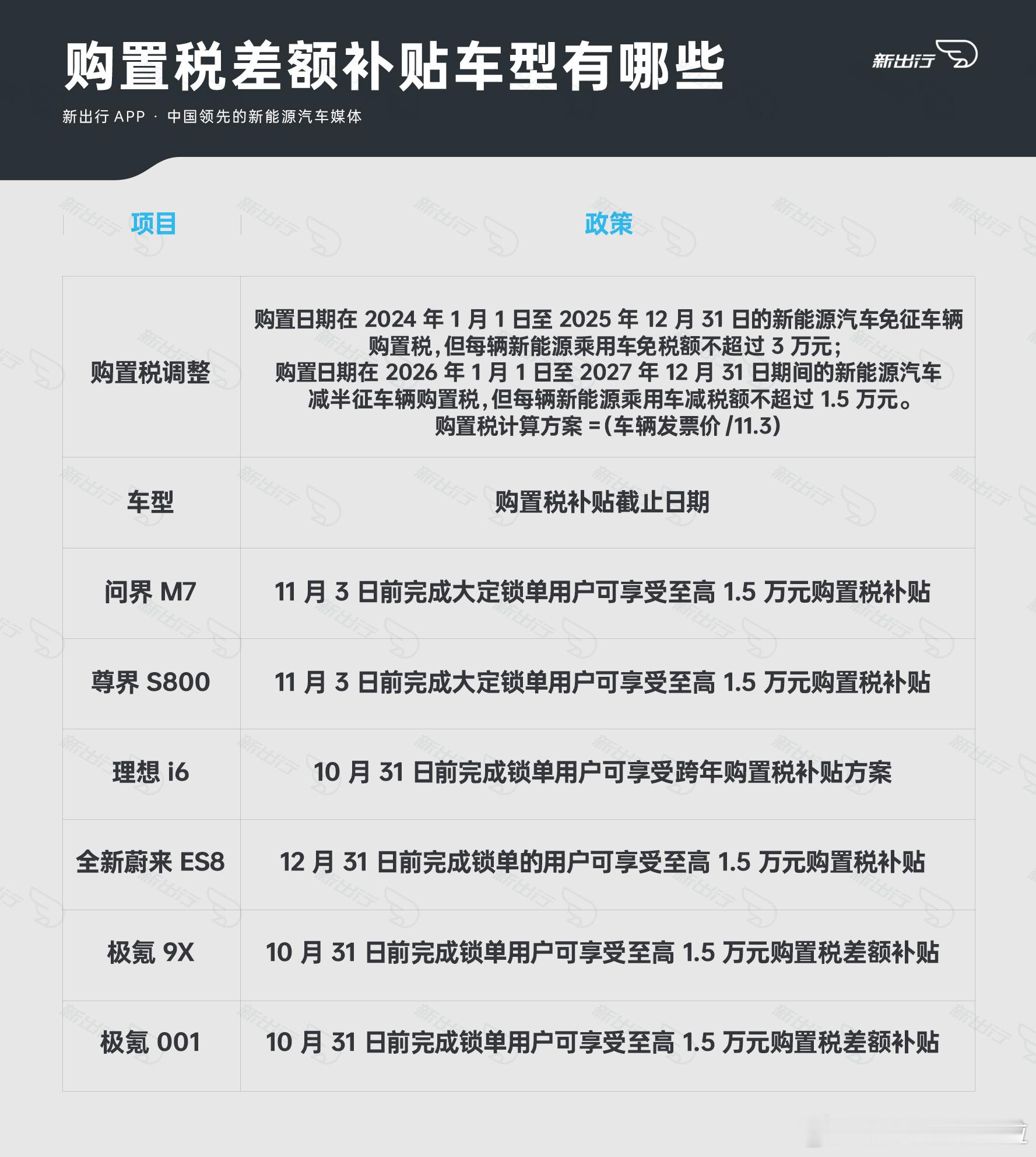 给大家汇总下都有哪些热门车型明确了锁单日期可享受跨年购置税补贴的。