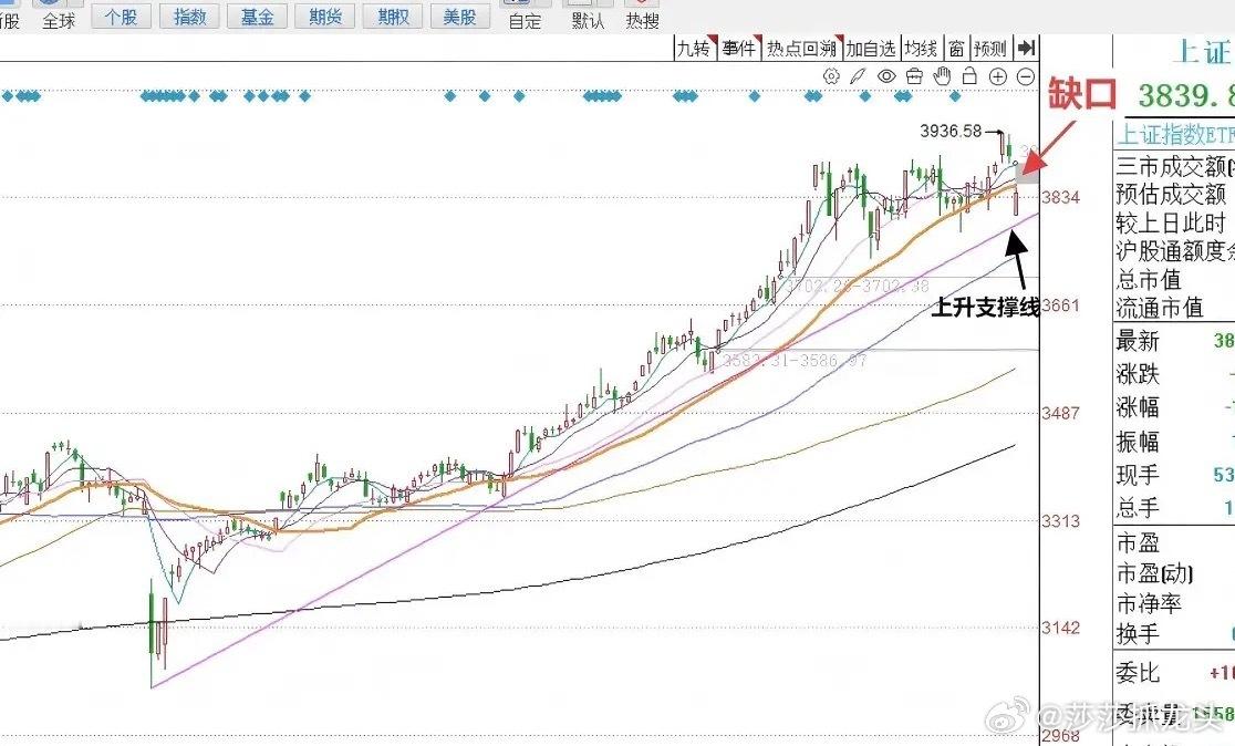 目前这种短线市场的强劲反弹走势,接下来怎么看?个人认为,接下来我们要面临的就是缺口回不回补的问题?以及缺口回补了之后,市场能不能创新高的问题?总之,目前市场指数既然已经从低位大幅反弹之后,我们应该以箱体理论来对待。也就是说这个位置不执着于去看新的高点,而是看市场延续前期的横向箱体震荡。箱体的高点3900点附近,箱体的低点,我们可以看到3732点附近。不过大家还是不要太过恐慌,放平心态[作揖][作揖][作揖]