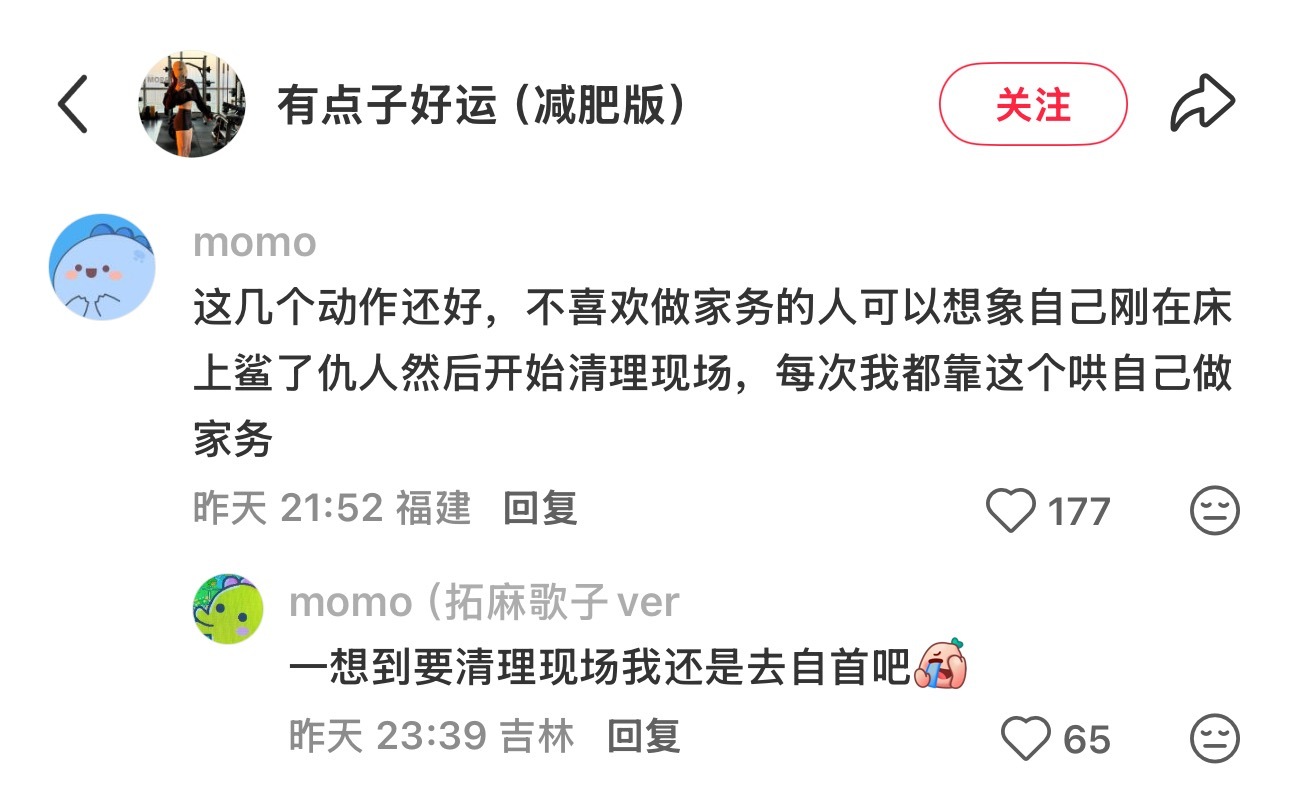 “不喜欢做家务的人可以想象自己刚在床上鲨了仇人然后开始清理现场”“一想到要清理现