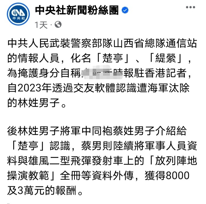 昨天台湾方面炒作大陆女特工涉雄风导弹泄密案,称其真实身份是武警情报人员。