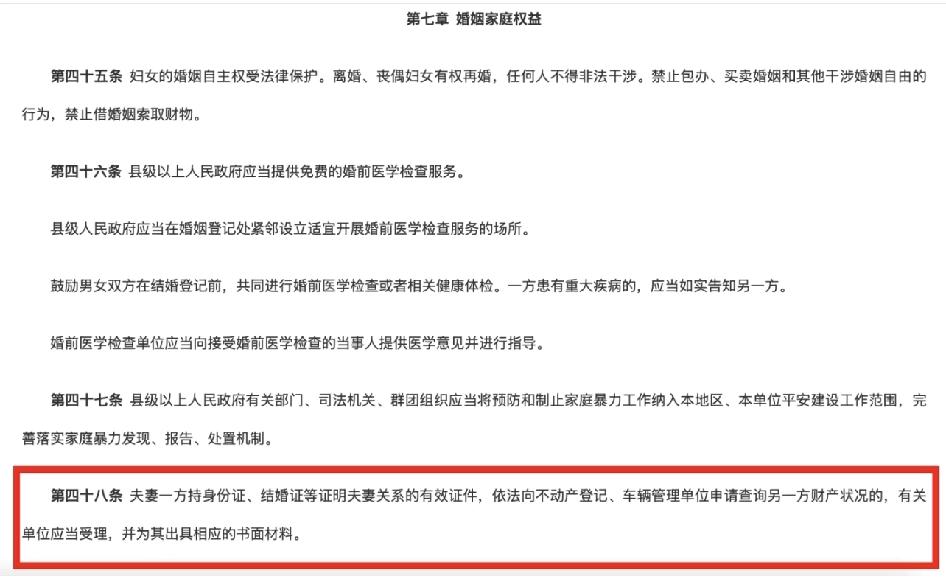 广东省内夫妻可以互查对方名下房产、车辆了! 不过这条规定应该有日期限制吧,如只能查询自结婚登记日期之后的财产状况,这样能更好地平衡夫妻共同财产权益和隐私权。感觉这个权利更应该出现在离婚诉讼的财产申报中。