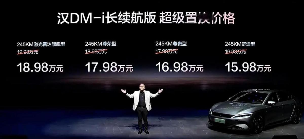 比亚迪这是真不给合资车留活路了。 汉长续航版直接把价格干到了15.98万起。 这个价格,以前你只能看看雅阁、凯美瑞的入门款,现在能买到满身黑科技的国产旗舰。 混动版DM-i,纯电能跑245公里,平时上下班通勤,根本用不着烧油,完全就是一台电车。就算跑长途,馈电油耗也才3.35升,比很多日系车都省。 纯电版更猛,续航最高705公里,还上了800V闪充平台,充电速度跟手机差不多快,彻底解决了续航焦虑。 车里面也全是好东西,车载冰箱、丹拿音响、DiLink100智能座舱,这些配置过去都是四五十万豪车才有的。 更关键的是,比亚迪把激光雷达和“天神之眼”高阶智驾也给了它,智能化水平直接看齐一线新势力。 云辇-C悬架、防晕车模式、时速190公里爆胎车辆稳定技术,这些都是全系标配。 安全、智能、豪华、省油全都占了,价格还这么有诚意。 你说,这个价位的合资B级车,还有什么理由不紧张?