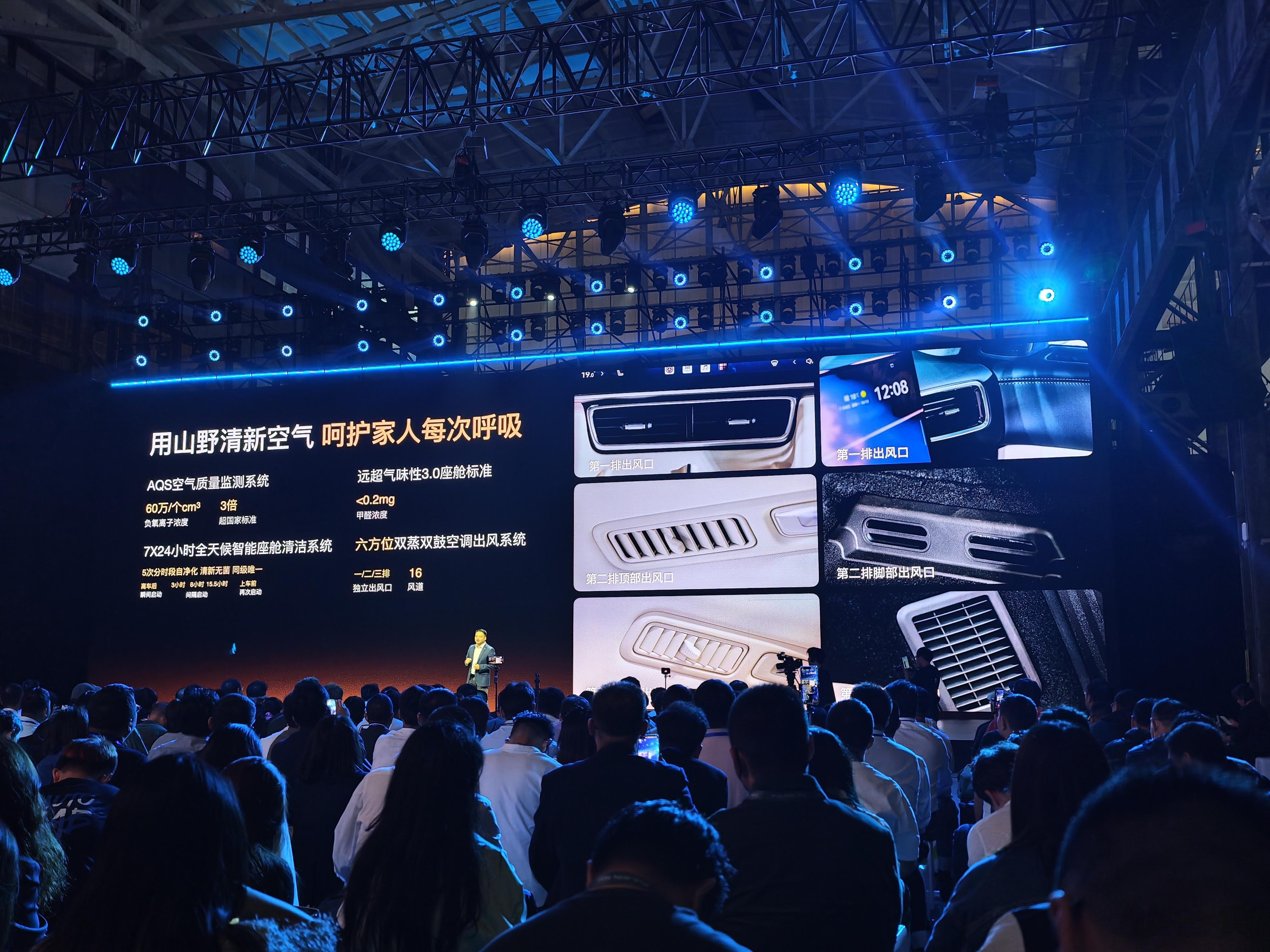整车使用母婴级材质打造,使用同级第一的17m²皮质包裹,整车16个出风口,会自动清洁车内空气,保证车内空气始终清新。电池支持IP68级防尘防水,各项指标远超国标,抗冲击、防燃、防水、抗压全面领先。配备同级领先电动密码手套箱,可以通过语音或中控打开,还为二排、三排配备了后排隐私玻璃。