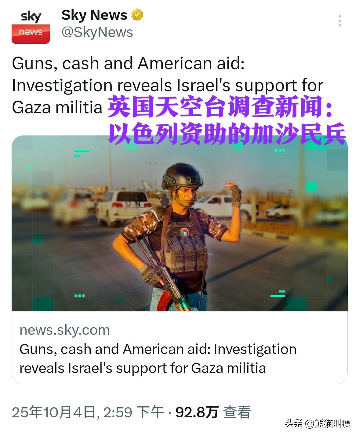 加沙刚获和平,巴勒斯坦还未真正建国,以色列已经押好了注: 英国天空新闻台调查发现,以色列通过自己资助的GHF(加沙人道主义基金)向加沙南部一支叛军持续供血,现在还要将他们推到未来管理加沙的角色上去。 这支加沙叛军近2年来陆续吃掉了加沙多支部族的民兵组织,帮助以色列在地面提供情报,拦截联合国和埃及救援物资卡车,还通过以色列边卡偷运香烟,手机,美金,武器以及车辆,准备随时启动扳倒哈马斯。 由于背靠以色列,他们迅速从几百号人增长到了3000人,总部就建在联合国援助卡车必经之路上。