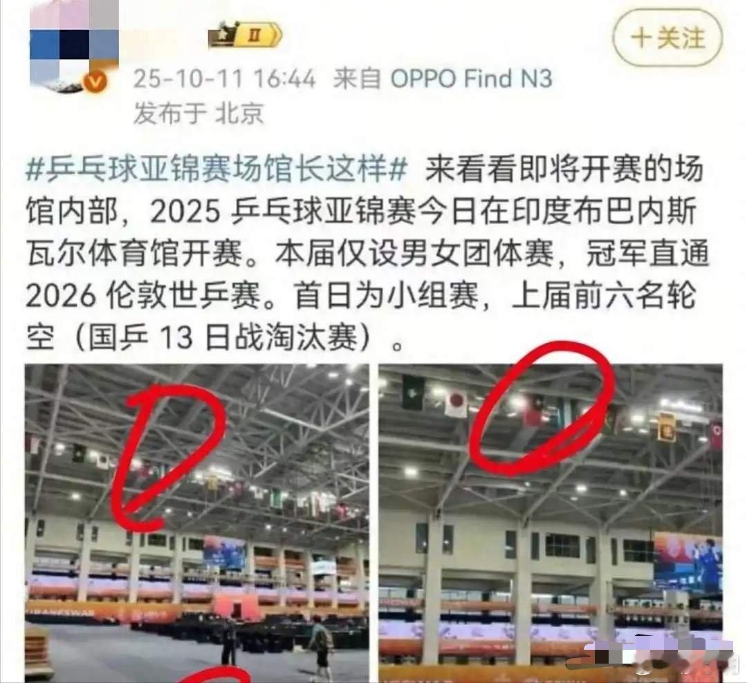 亚锦赛撤下台湾地区伪旗仅仅撤下就可以了?连个道歉都没有。乘这个机会,中国乒协为何不退出赛事以示抗议呢?比赛条件差点还可忍受,侮辱国家尊严是可忍孰不可忍,必须进行反制,必须要求国际乒联、亚乒联和印度主办方公开道歉,追究相关人员责任。热点观点