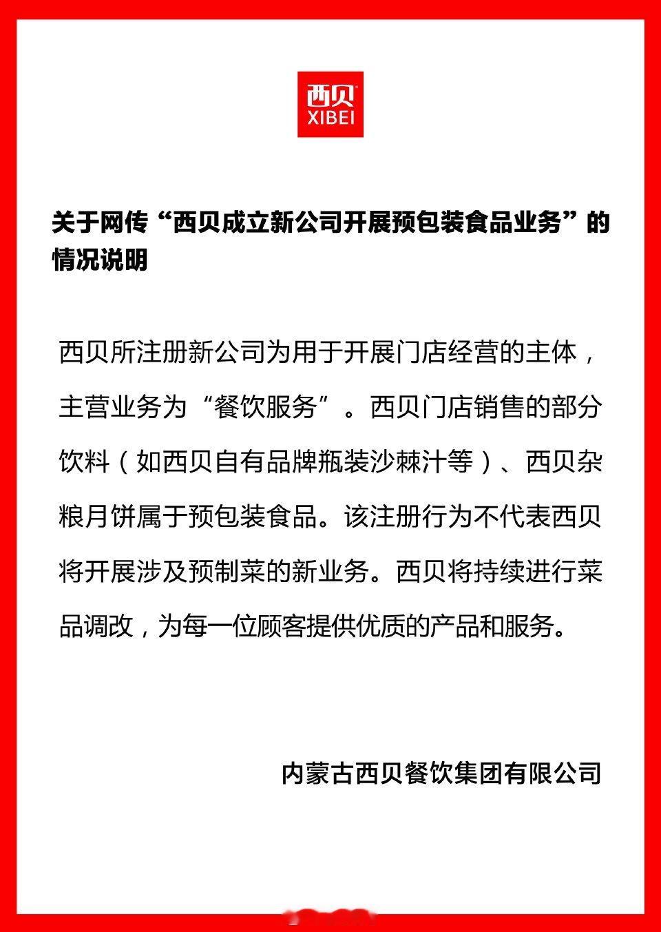 西贝回应成立公司卖预包装食品西贝真被整怕了,不敢想象不回应的“下场”。