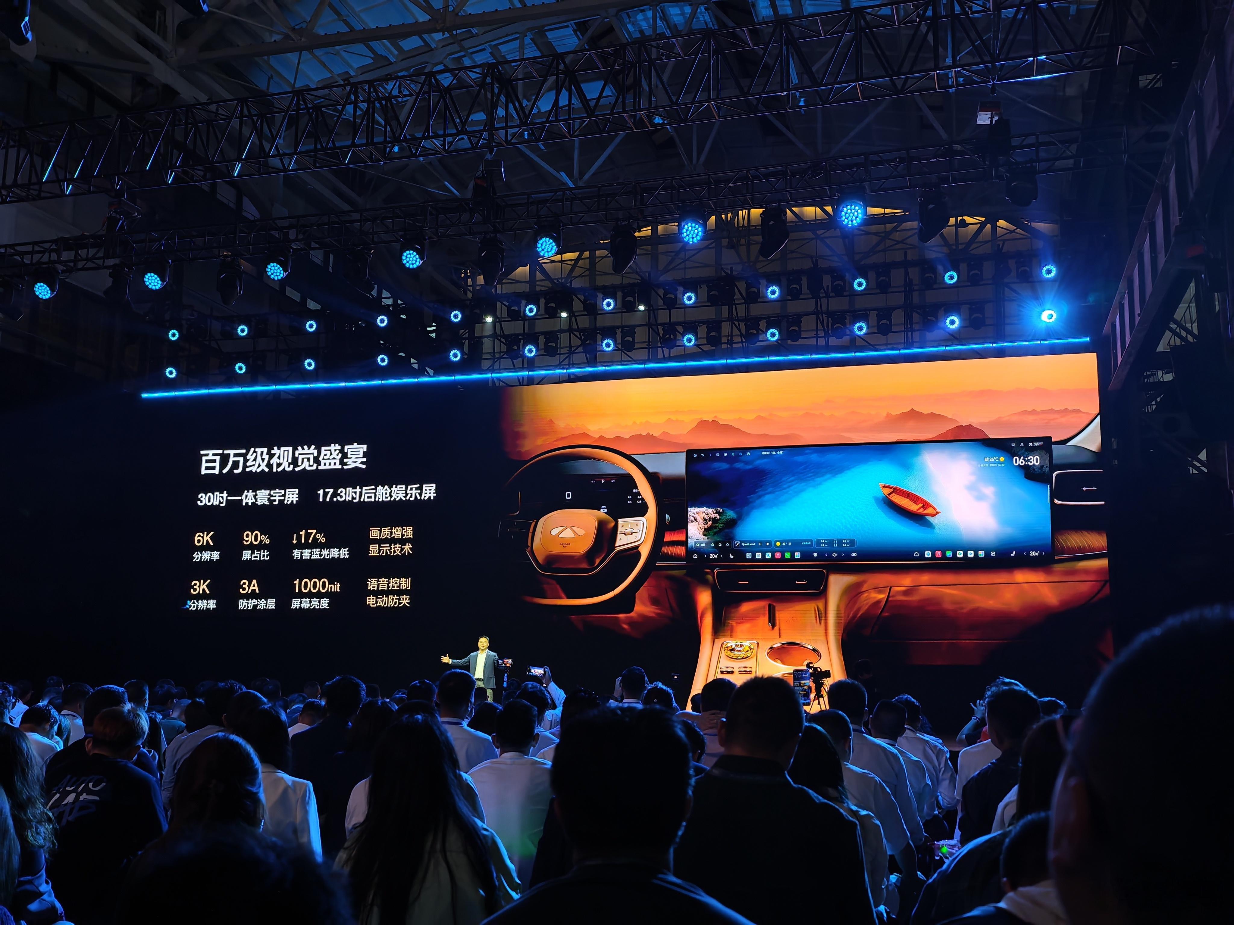 奇瑞风云T11的“大彩电”部分,前排30英寸6K大屏横跨几乎整个中控,后排还有1