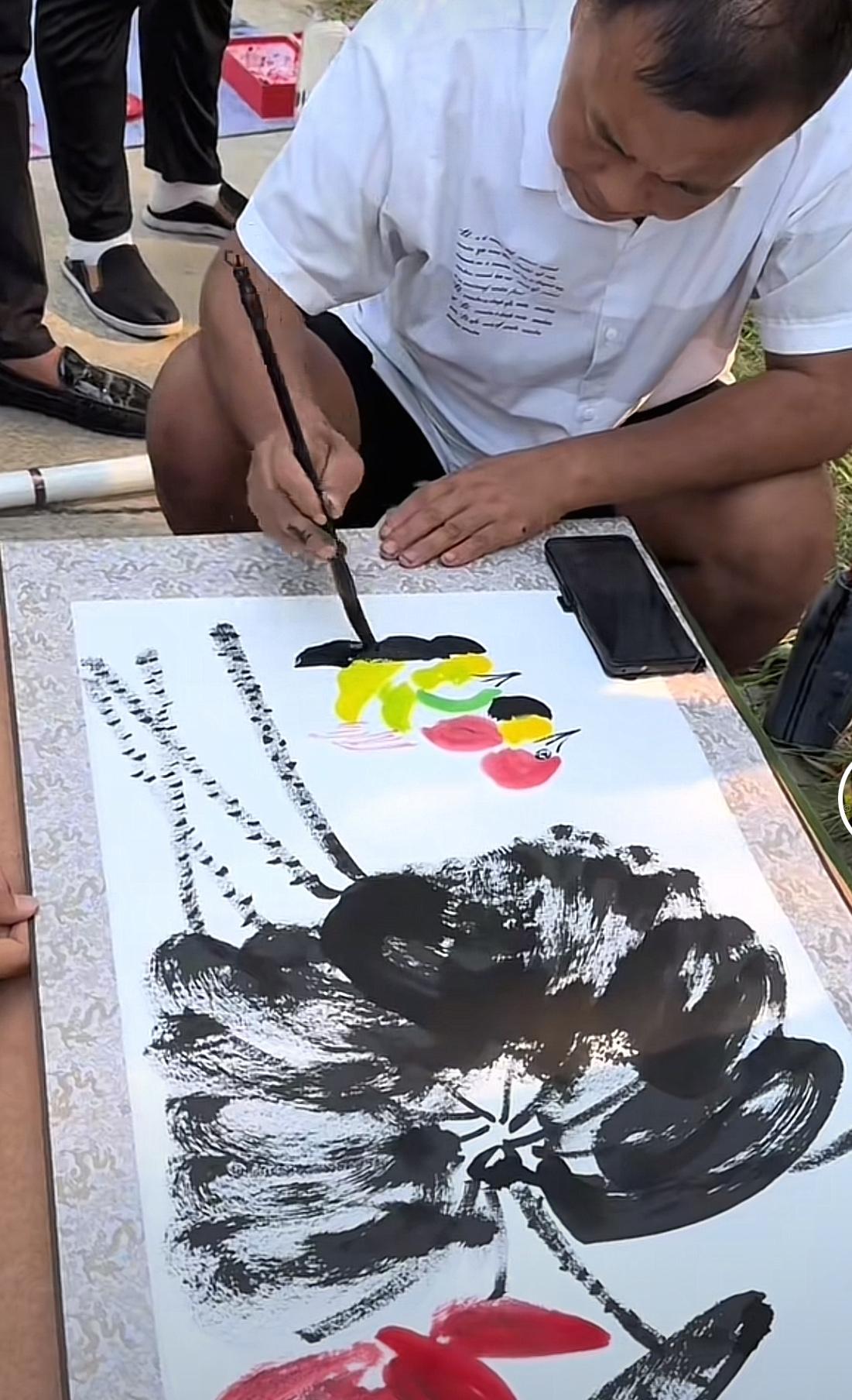 沈巍今天不受烤鸭事情影响,心情爽朗,开笔画画了,还是画他最拿手的荷花[赞]大笔一挥,寥寥数笔,把荷叶荷花画得娇艳美丽。荷叶下面还有两只小黄鸭在戏水,可爱又有趣[笑哭] 画完这幅画,沈巍收入200红包,主播转手就能卖出高价,挣个500~1000没问题[呲牙]