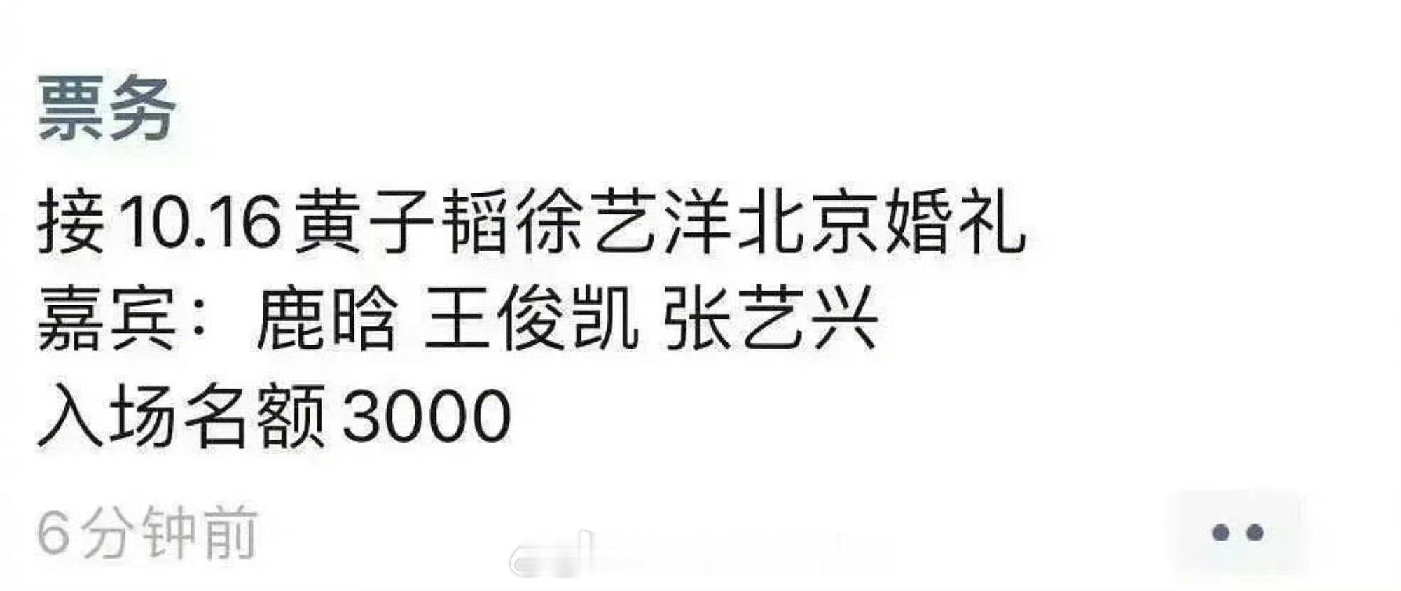 网传黄子韬徐艺洋10.16号要在北京办婚礼,黄牛说鹿晗、王俊凯、张艺兴会出席。