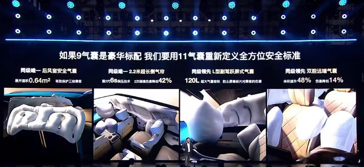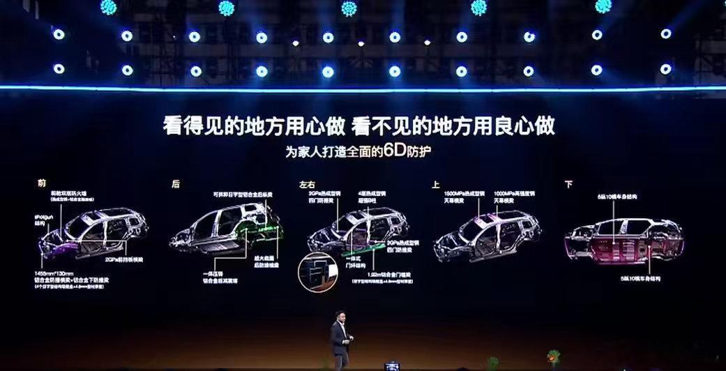 全系标配11个安全气囊,连后风窗都配有气囊,防护无死角。车身采用88%高强度钢铝混合结构,扭转刚度达37300N·m/deg,坚固又稳定。电池具备IP68级防水防尘能力,2毫秒内极速断电,真正做到“零自燃、零热失控”。