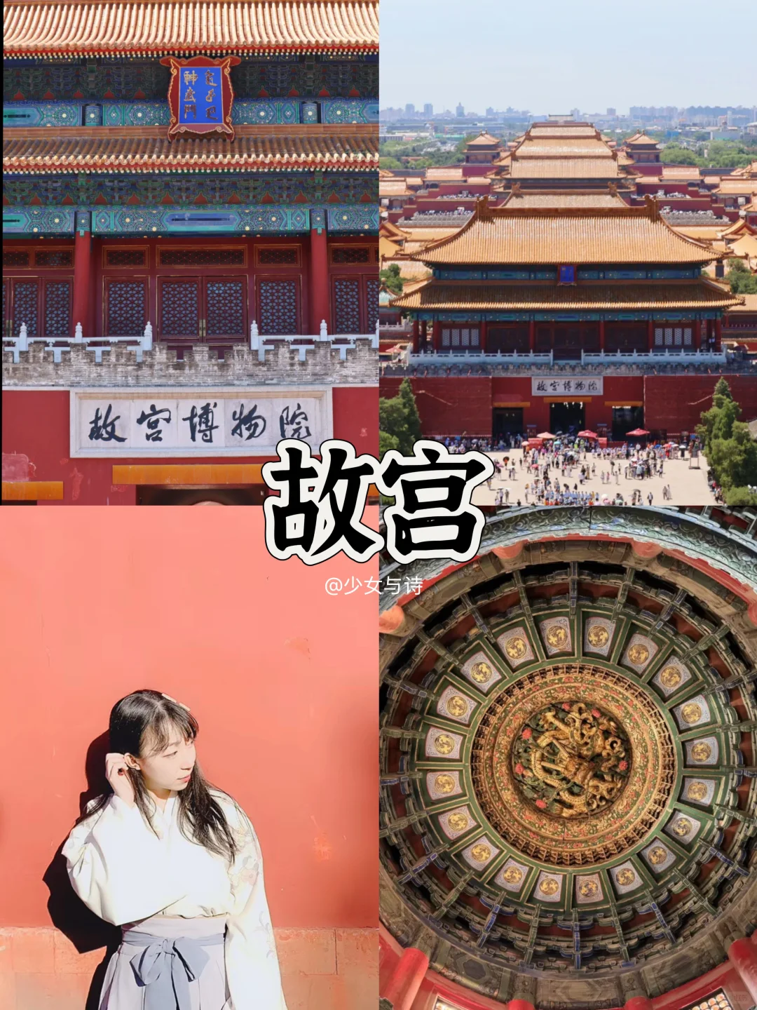 提前一周冲“故宫博物院”🍊预约!建议早早就从东华门溜达去午门,一路逛太和殿、乾清宫,感受皇家气派~ 逛完去对面景山,万春亭上拍故宫全景,分分钟刷爆朋友圈