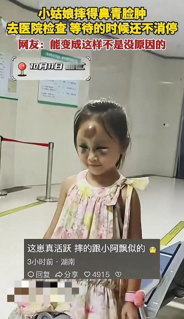 该心疼还是该笑?浙江这娃摔得鼻青脸肿,在医院还窜上跳下!换别的小孩摔成这样,早哭着扑爸妈怀里了,她倒好,候诊椅成了小舞台,上蹿下跳没半分老实样,这“皮实度”真让人惊掉下巴。 网友评论全是共鸣,有人调侃她这是摔出了“天然彩妆”,脑门的伤还好说,眼下两道印子真猜不出是咋摔的;还有人回忆自己童年:“要是我摔成这样还不消停,早挨揍了!” 其实这股子“摔了也不怕”的劲儿挺难得,比玻璃心哭唧唧可爱多了。不过话说回来,调皮归调皮,家长还是得盯紧点,毕竟磕磕碰碰疼的是娃,真摔出严重问题可就笑不出来了。你小时候有没有摔得够呛还照样疯玩的经历?