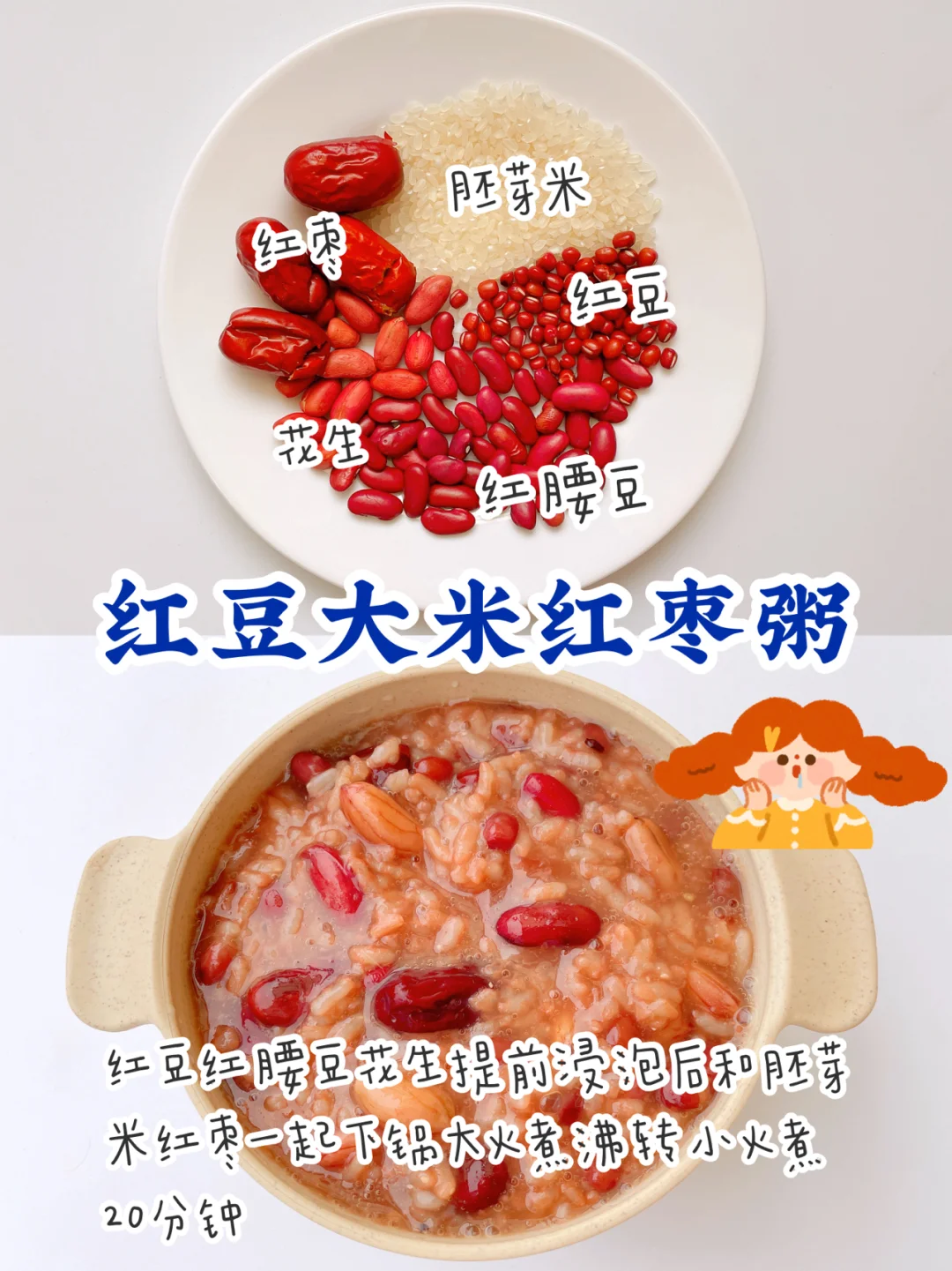 煮制:红豆、红花生、红腰豆提前浸泡后和红枣胚芽米一起放入锅中➕食材两倍量的清水,大火煮开后转小火煮20分钟。