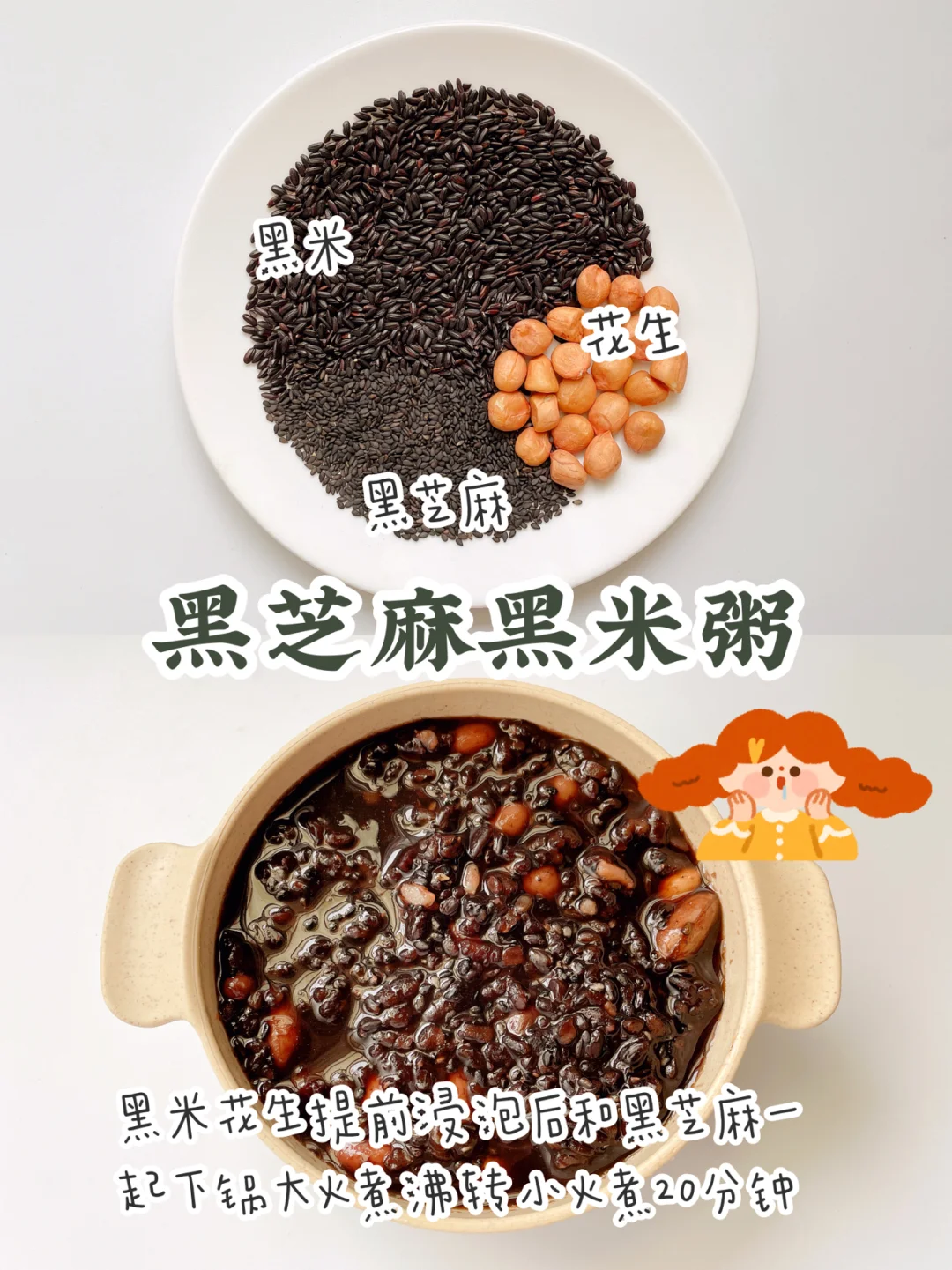 煮制:黑米、花生提前浸泡后和黑芝麻一起放入锅中➕食材两倍量的清水,大火煮开转小火煮20分钟左右。