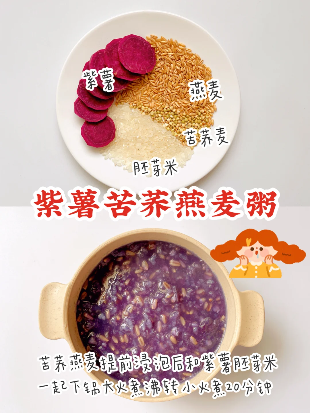 食材:紫薯、燕麦、苦荞麦、胚芽米