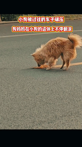 在马路上,一只小狗不幸被过往车辆碾压。狗妈妈发现后,悲痛欲绝,在小狗的遗体上不停地翻滚,那动作里满是绝望与不舍。母爱从不是人类的专属,在动物世界里,这份对孩子的爱同样深沉浓烈,看着狗妈妈的样子,真的让人心都揪紧了,为这逝去的小生命,也为这撕心裂肺的母爱。公路上撞狗 狗狗去世 狗瞬间 心痛 日常分享