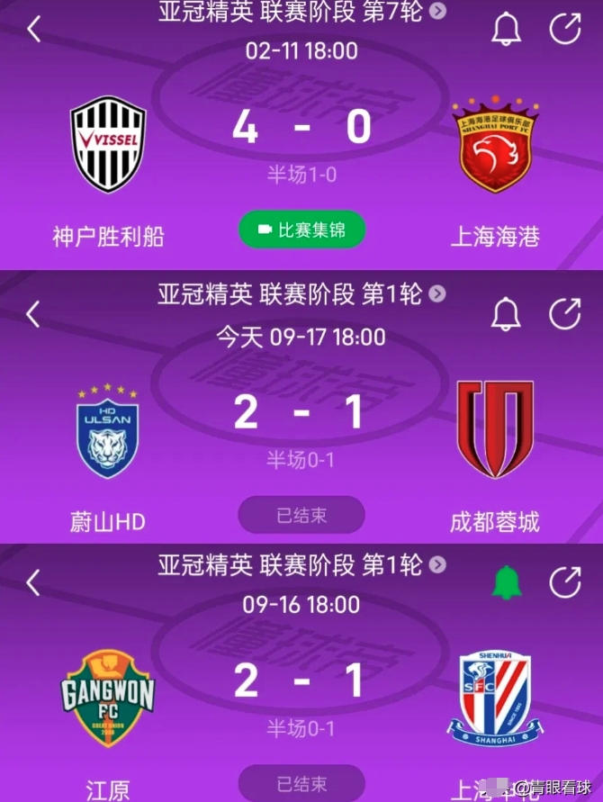 中超前三名球队亚冠首轮全部输球,再这样输下去,1+1+1的亚冠名额也要保不住了。 亚冠精英联赛首轮,中超冠军上海海港0比3负于神户胜利船,中超亚军上海申花1比2负于江原,中超季军成都蓉城1比2负于蔚山。 海港、申花、成都是上赛季中超联赛的冠亚季军,也是本赛季中超联赛积分榜上的前三名球队。在中超赛场呼风唤雨的三大豪门,来到亚冠赛场如此不堪一击。 下赛季亚冠,中超的名额由2+1+1降为1+1+1。广州队当年打下的亚冠积分,在一步步被蚕食。