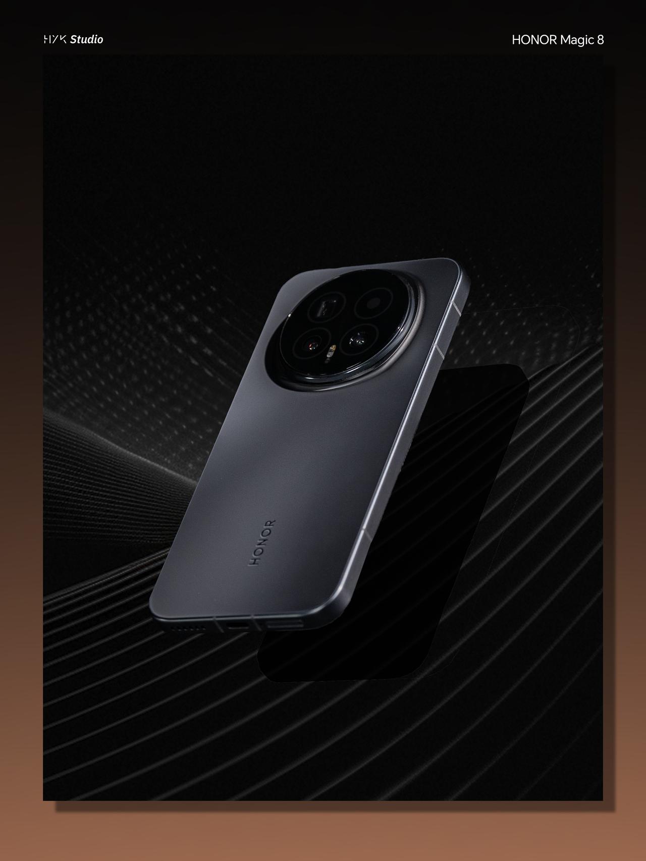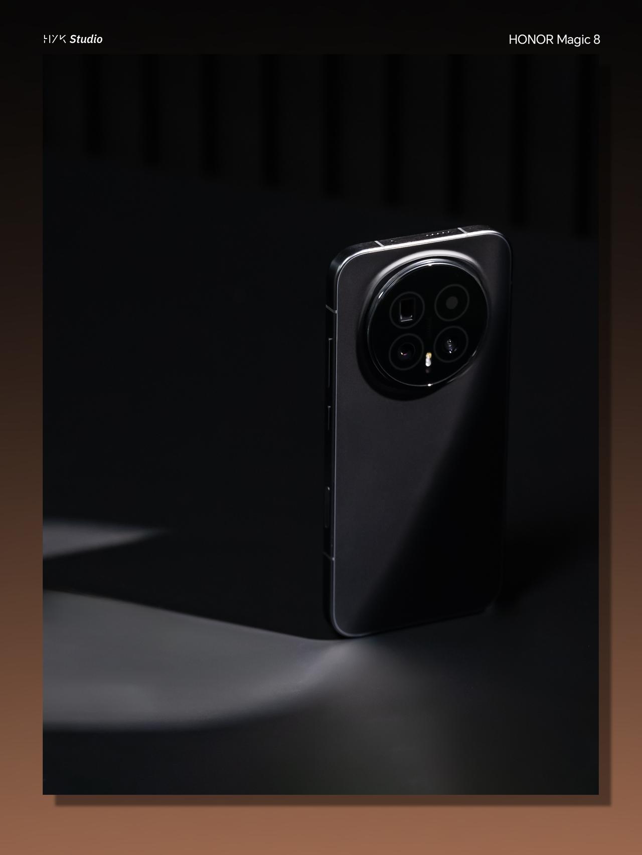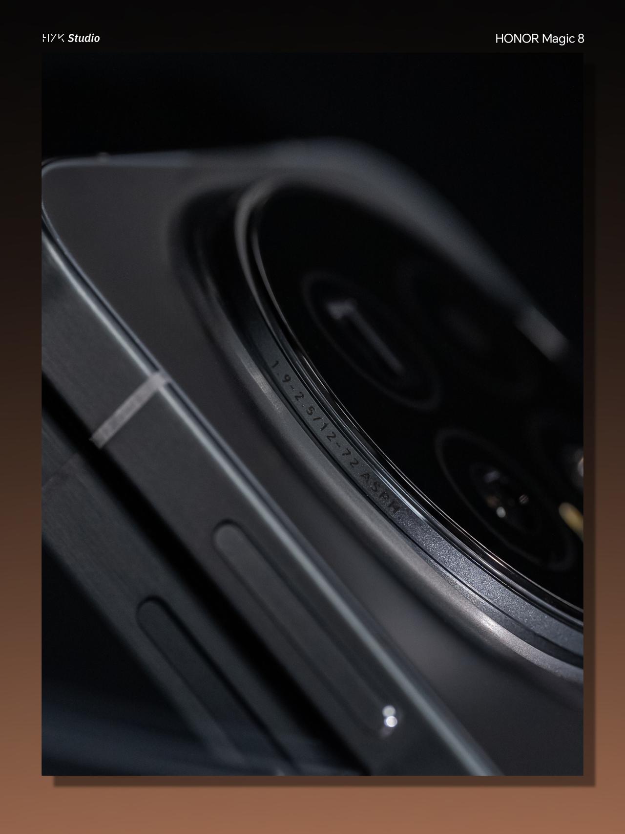 HYK图赏|荣耀Magic8 这款是“绒黑色”版本,机身以黑色为主,后盖是哑光磨砂材质,边框是磨砂金属材质,不沾指纹还很有质感,在光线照射下,随着角度不同还会有微妙的变化。后摄延续之前“方圆宇宙”的设计语言,不过辨识度还是在的。