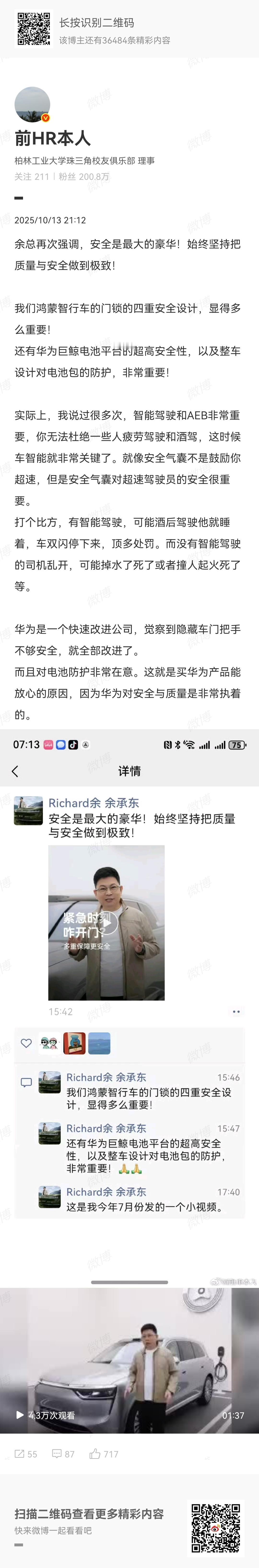 直到这一刻,我才真正意识到了华为的含金量啊!近日,余承东在朋友圈再次发文强调:“安全是最大的豪华!始终坚持把质量与安全做到极致!”随后,更是更进一步,解释了华为汽车为了安全与质量所做的努力。 首先是鸿蒙智行车的四重安全设计,这样的设计,专门针对极端碰撞场景,一般新能源电动车,如果发生碰撞,车门很容易就打不开。 但是华为却专门在常规的解锁系统之外,还设计了碰撞解锁冗余模块,稳定性极高,成本也将近是业界方案的三倍,这保证了华为鸿蒙智行车,无论遭遇怎样的碰撞,最后都能顺利打开车门! 其次则是华为巨鲸电池平台的超高安全性,华为的巨鲸电池平台,在电池包底部采用高强度材料,构建了三层特种防护,极大增强了其抗冲击抗碰撞能力; 除此之外,还有十层电池防护、加厚侧边防撞梁、车底高强度防撞梁这样的整车设计,堆料毫不吝啬,毫不犹豫把钱放在了这些看不见的地方,使得电池包的安全性进一步提升。 可以说,华为是真的把“安全是最大的豪华”这一句话,落到了实处了。 不得不说,直到这一刻,我才真正意识到了华为的含金量,汽车不是什么普通电子设备,这是关系到人身安全的重要工具,因此安全永远都是第一位的,在此之外的颜值、性能等等,都是居于第二位的,只有真正能够保护车主人身安全的汽车,才是一辆好汽车!