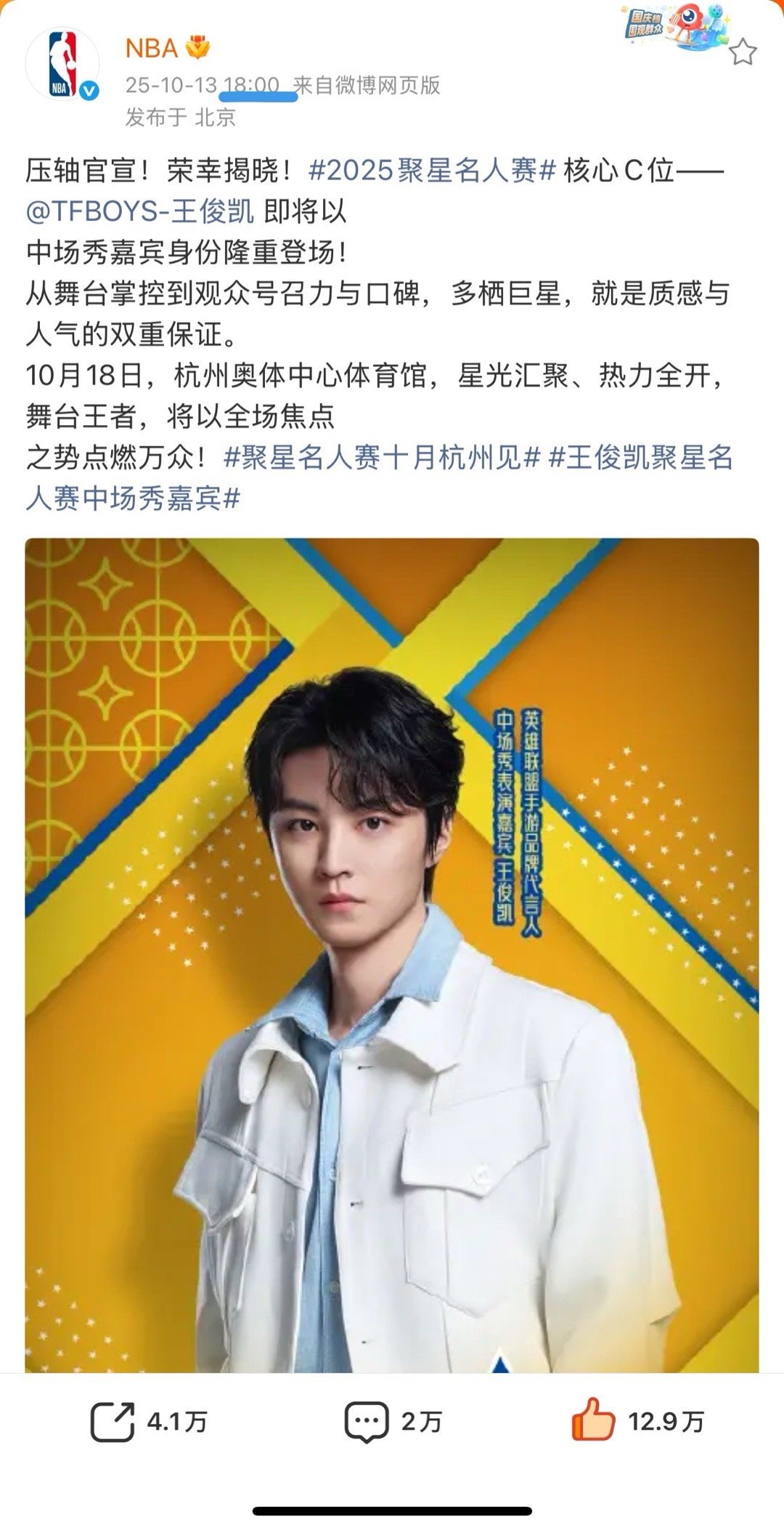 2025聚星名人赛海报,王俊凯被官方认证核心C位,排面🈶了!