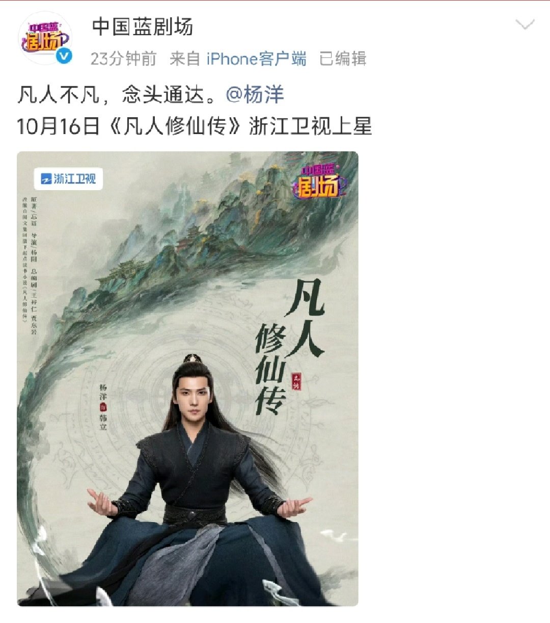 凡人修仙传10月16日浙江卫视上星杨洋凡人修仙传上星浙江卫视杨洋凡人修仙传上星了