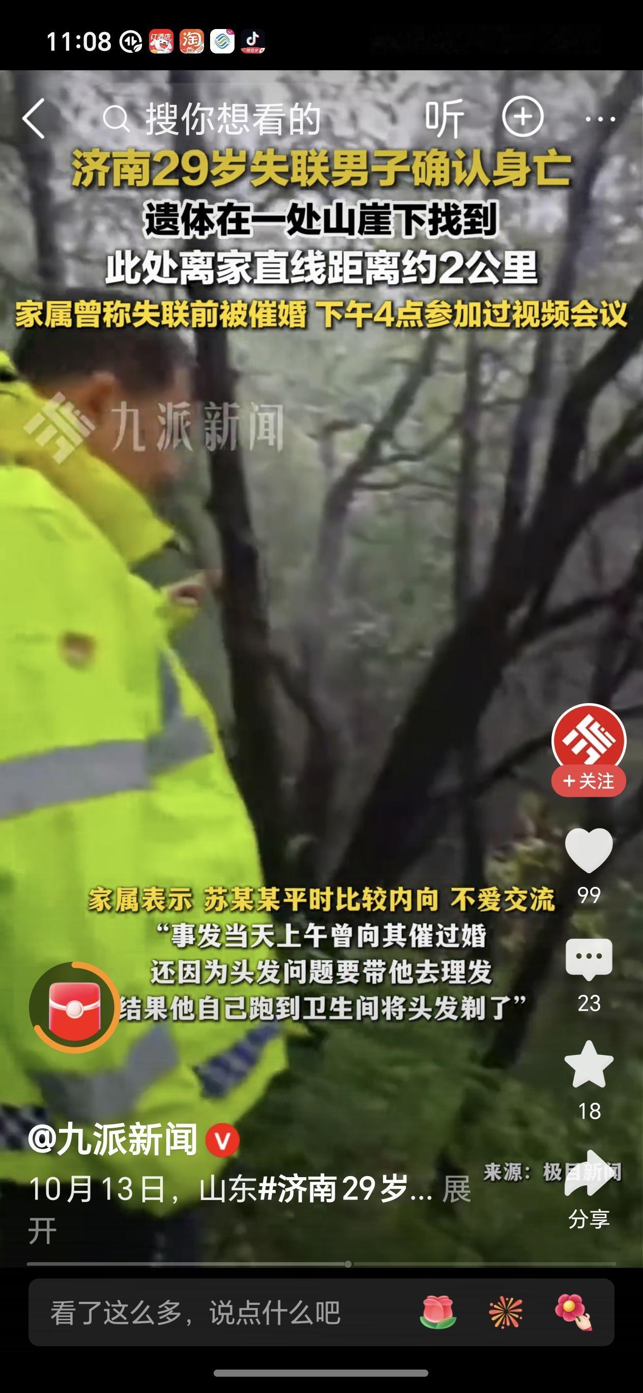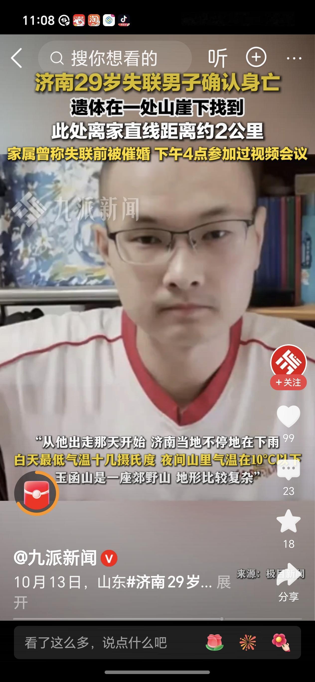 太让人痛心了,济南29岁的失联男子已确认身亡。10月4日,男子和家人因琐事争吵后