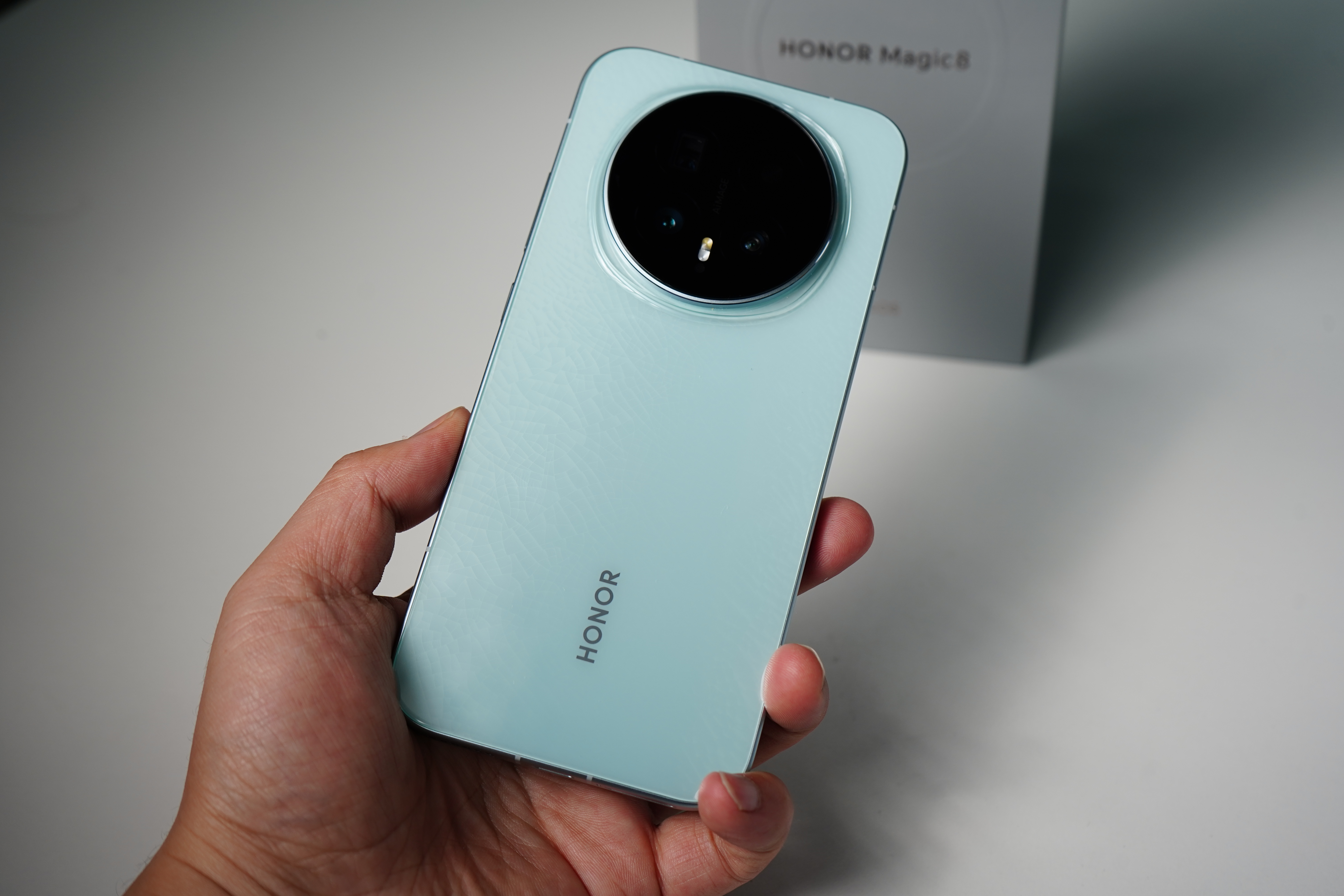荣耀 Magic8天青釉真机实拍,很优雅特别,透露着不一样的气质……荣耀算是在产品设计上有自己思考的,荣耀数字系列新潮大胆,荣耀旗舰Magic 系列延续创新。所以荣耀 Magic8既做到了你一眼看上去就知道是荣耀的产品,又做到了细细品味有不一样的感觉,浪漫的中式美学。