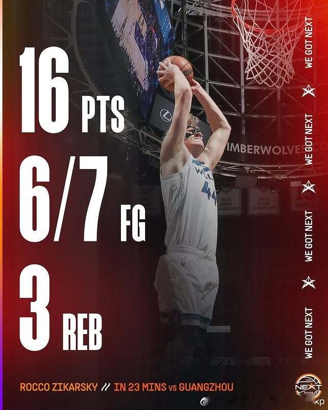 Rocco Zikarsky(2006-221cm-C)季前赛对阵广州拿下16分3板NBA[超话]