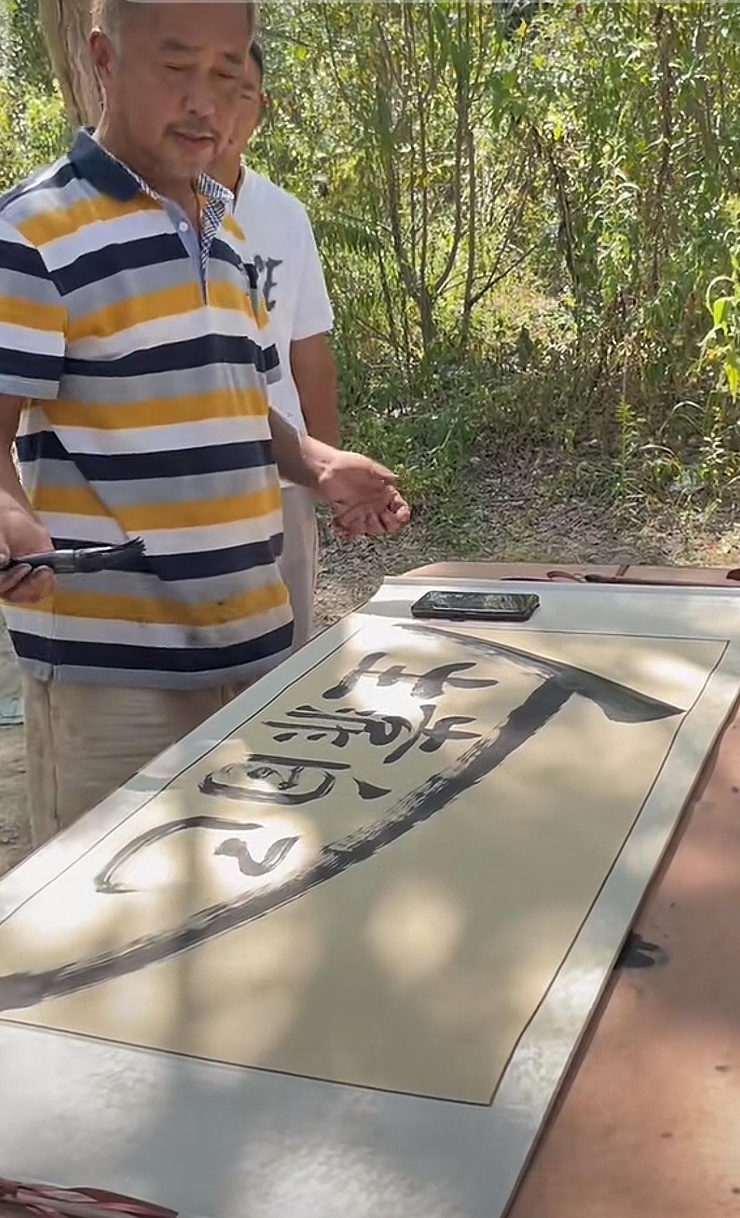 沈巍写完这一幅字,挺起腰板,说:“我觉得人生靠自己是不太对的。一个人的成长经历,还是要靠社会资源,靠亲朋好友。像我,受到粉丝们的厚爱,才有我今天的样子。如果不是这样,我也很好,可以做自己喜欢做的事情。”