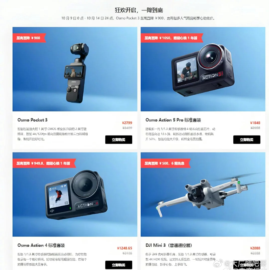 10 月以来,大疆突然启动大规模降价,多款主力产品降幅近千元。