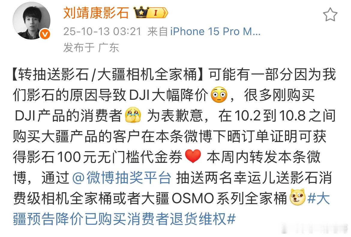 隔壁影石CEO忙赶来添一把火:可能怕被影石偷家所以降价了,给大家发放100元代金券以表歉意。[黄鸡大笑]
