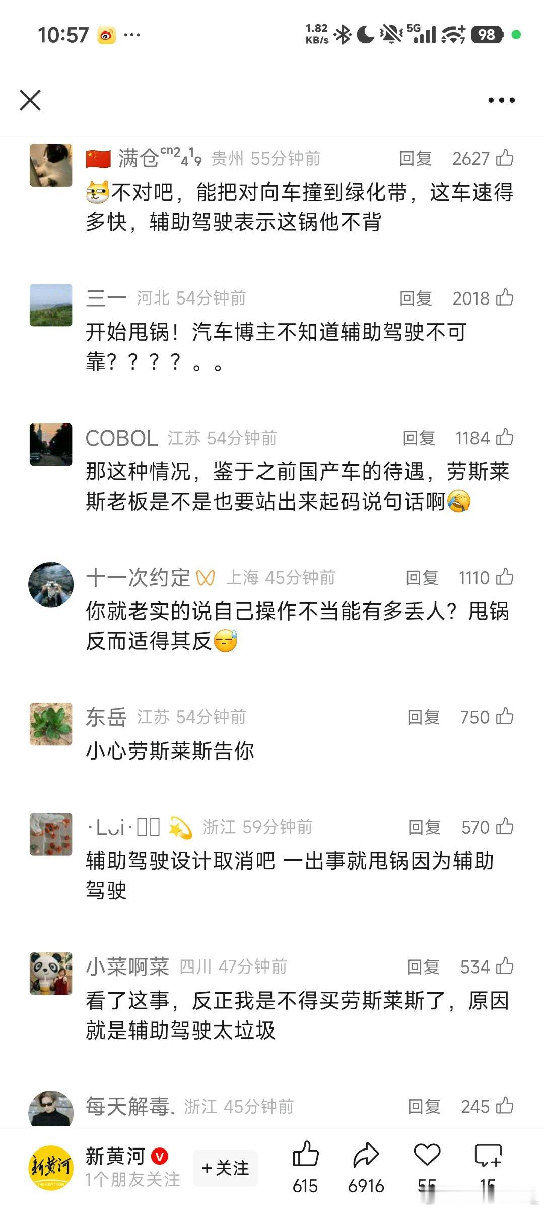 二环十三郎下次就要说劳斯莱斯辅助驾驶能力远不如xx,要是我开xx出门出门他们的辅助驾驶肯定就不会出车祸了[思考]
