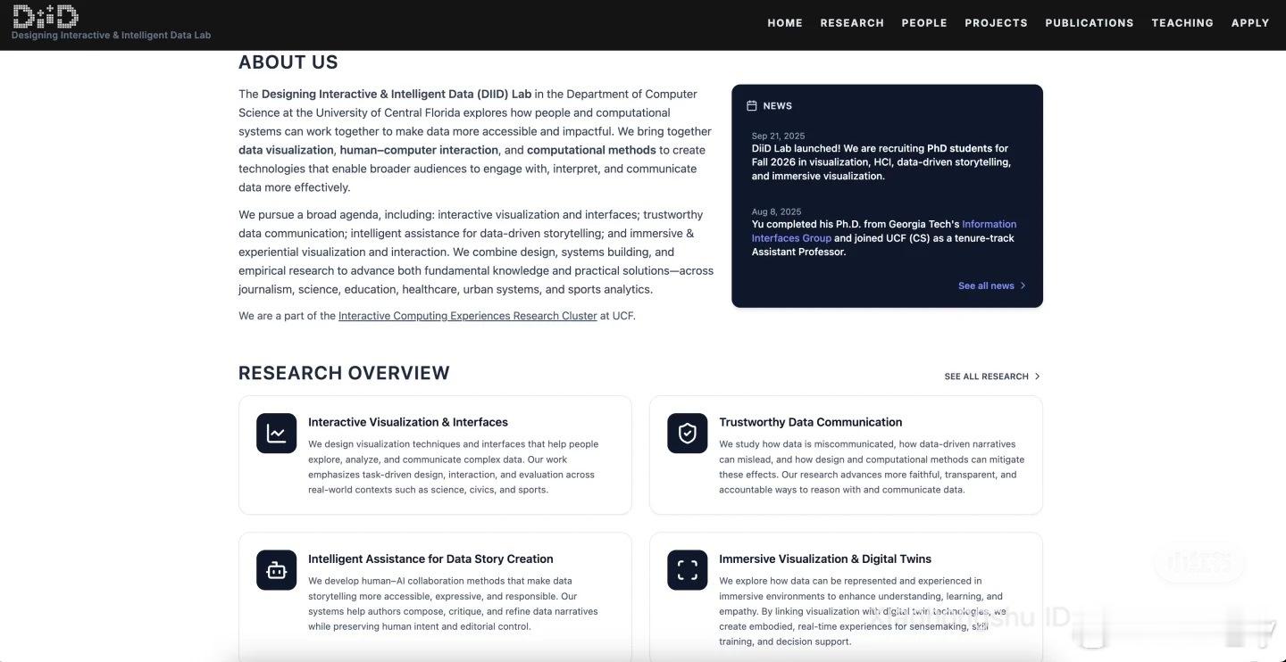 💡 实验室介绍: DIID Lab(Designing Interactive & Intelligent Data)致力于探索如何通过可视化、HCI与生成式AI,让更多人理解并信任数据。我们设计智能交互系统,帮助用户更好地分析、讲述与体验数据。