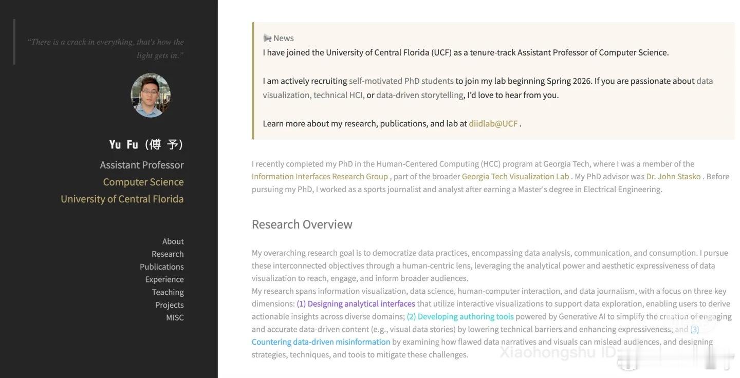 🎓 我将在美国中佛罗里达大学(UCF)计算机系招收2-3名全奖博士生(2026年秋季入学),研究方向涵盖: ✨ 数据可视化与可视分析 🤝 人机协作与数据驱动叙事 🧠 可信数据传播 🌐 沉浸式可视化与数字孪生