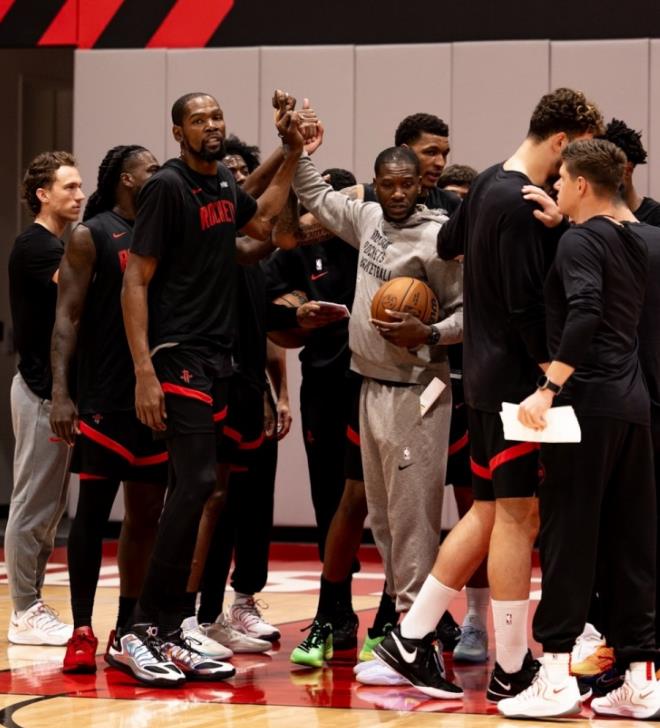 前一场火箭队首发5虎是阿门、谢泼德、KD、小史密斯和申京,下一场也差不多。火箭队