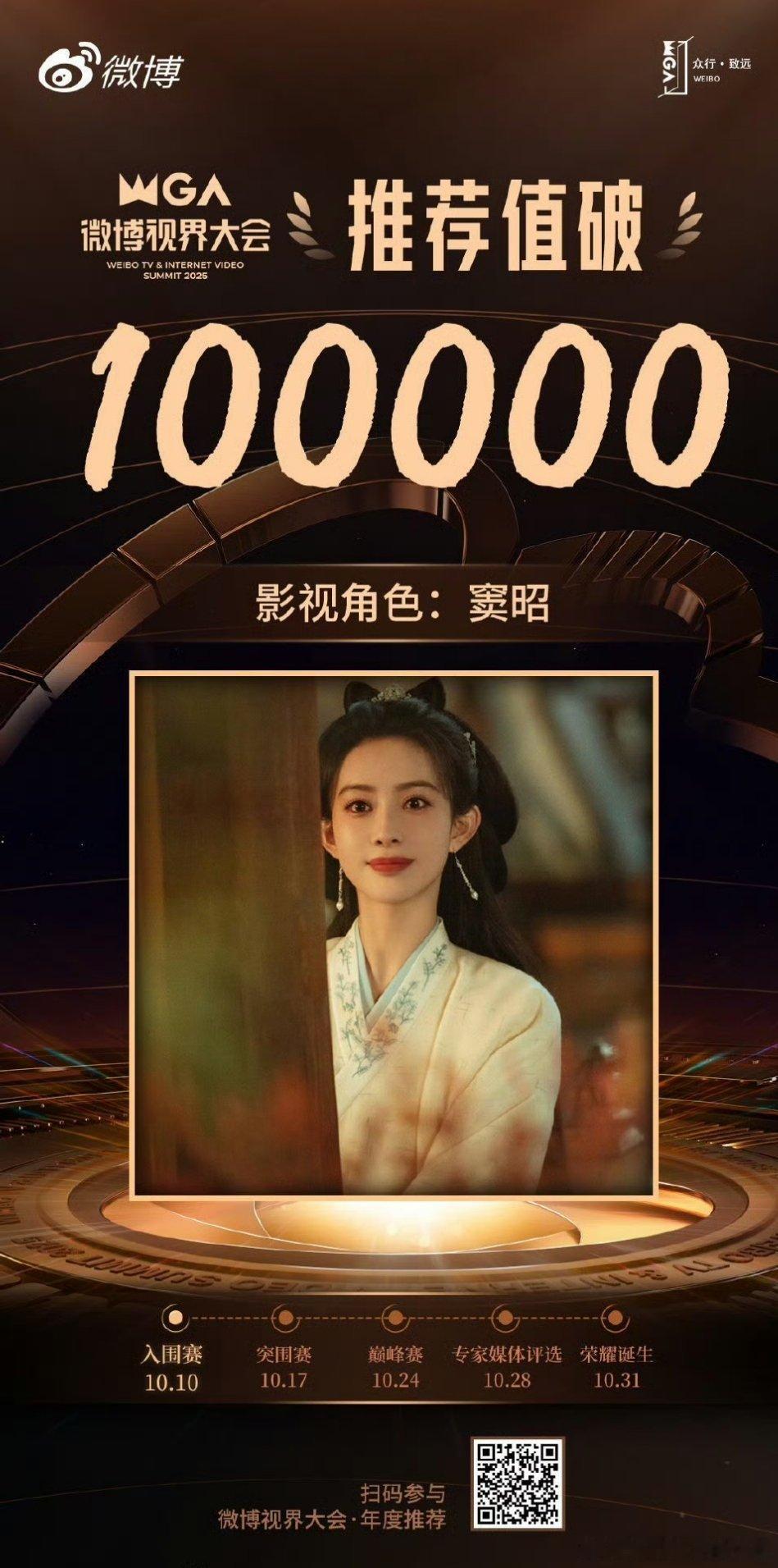 孟子义《九重紫》窦昭一角在微博视界大会年度推荐值破10万!大女主厉害👍🏻