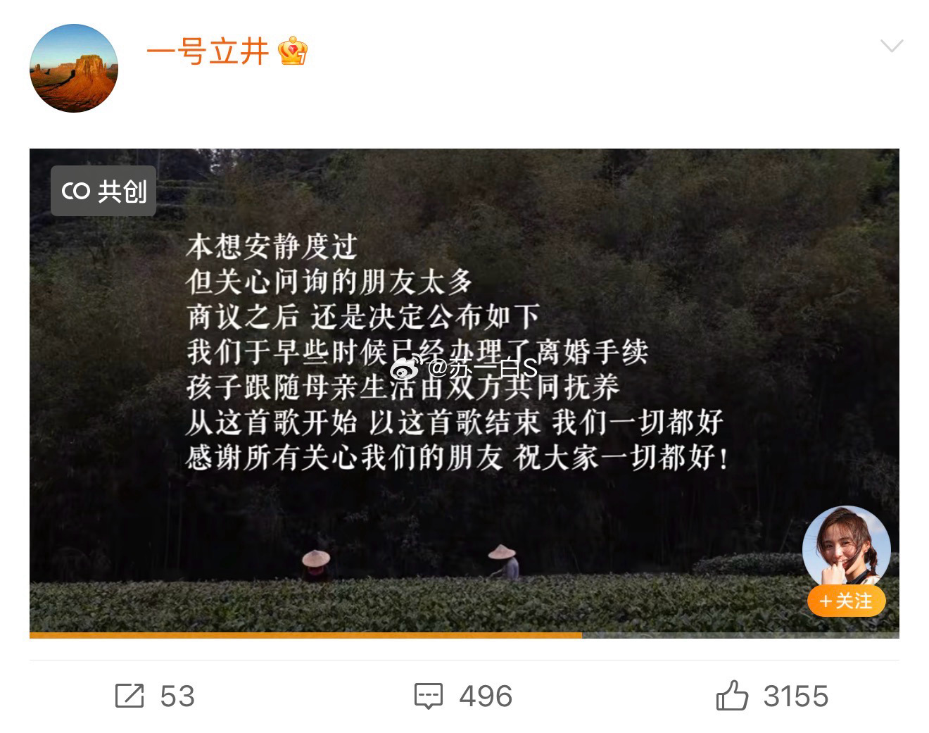 李亚鹏离婚‼️“已经办理了离婚手续,孩子跟随母亲生活,由双方共同抚养”👇