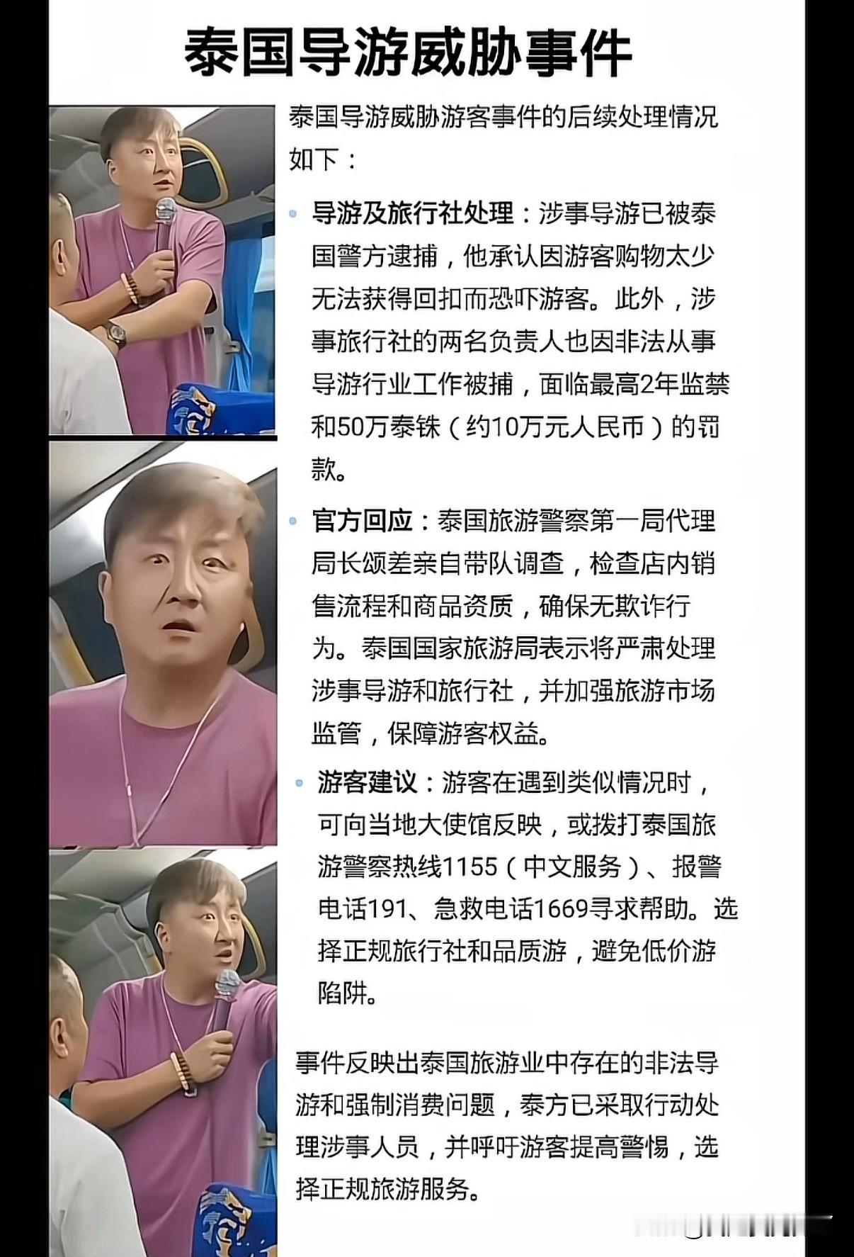 都2025年了还有导游敢这么嚣张,他是怎么敢的呀 威胁游客要让人无法回国,真的以为在国外就没人能管的了他了吗,而且让他带队的旅游公司这回也会被罚的很惨 客人总是会回国的回来以后的投诉问题他在威胁的那一刻难道想不到吗? 敢这么嚣张的威胁游客可以断定他是没有考取导游证的,因为有导游证的正规导游是不敢这么干的,他们害怕一旦被投诉做实强制购物外加人身威胁是一定会被取消导游资格的,而导游证考取没有那么容易每年全国统考参与考试取得导游证的通过率只占20%左右 而这位连导游证都没有的叫李海的中国籍黑导游目前已经被泰国警方逮捕,泰国他肯定是待不下去了,就一条打黑工他都得被遣返