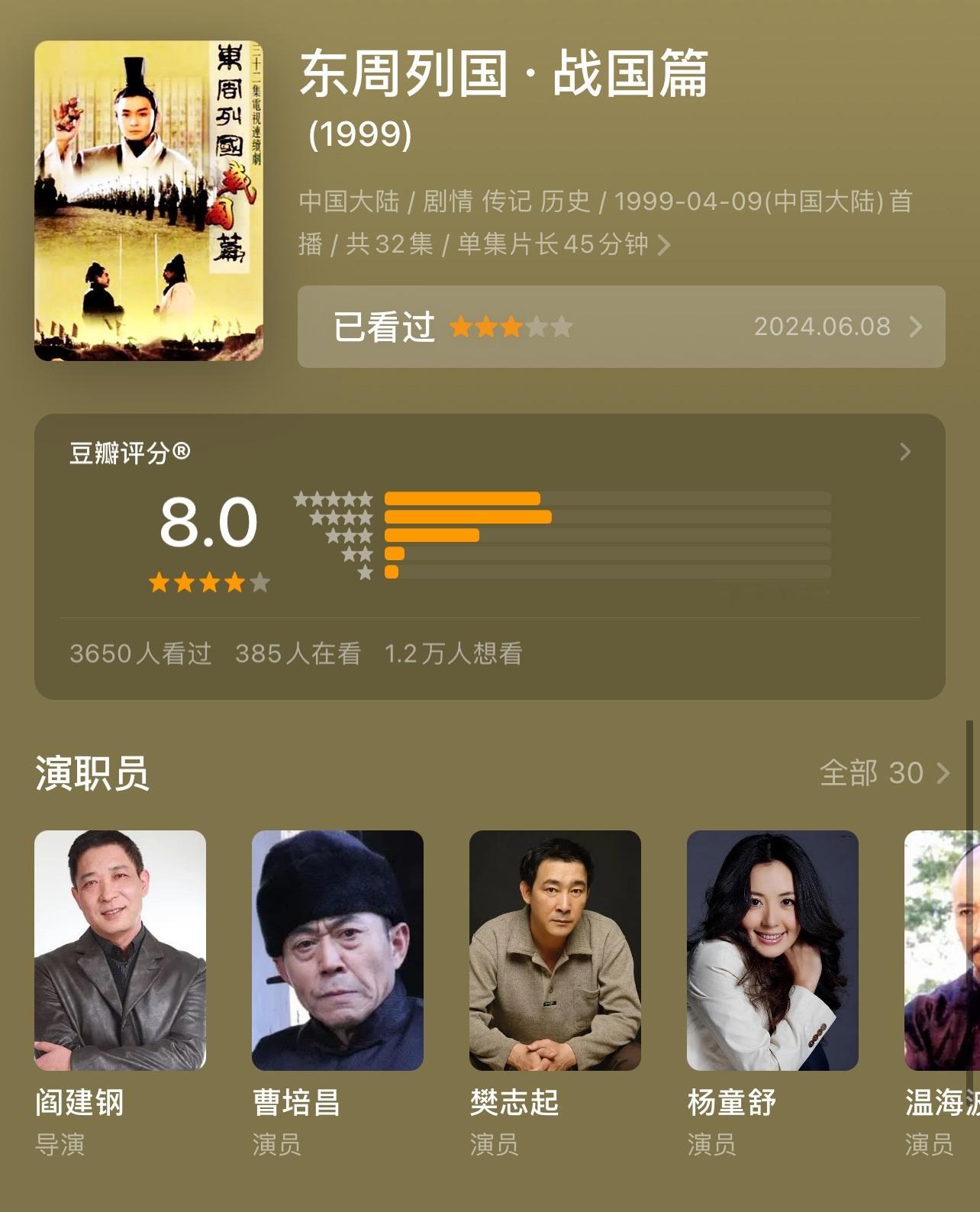 东周列国·春秋篇和战国篇,不同导演拍的,差别真的好大。沈好放导...