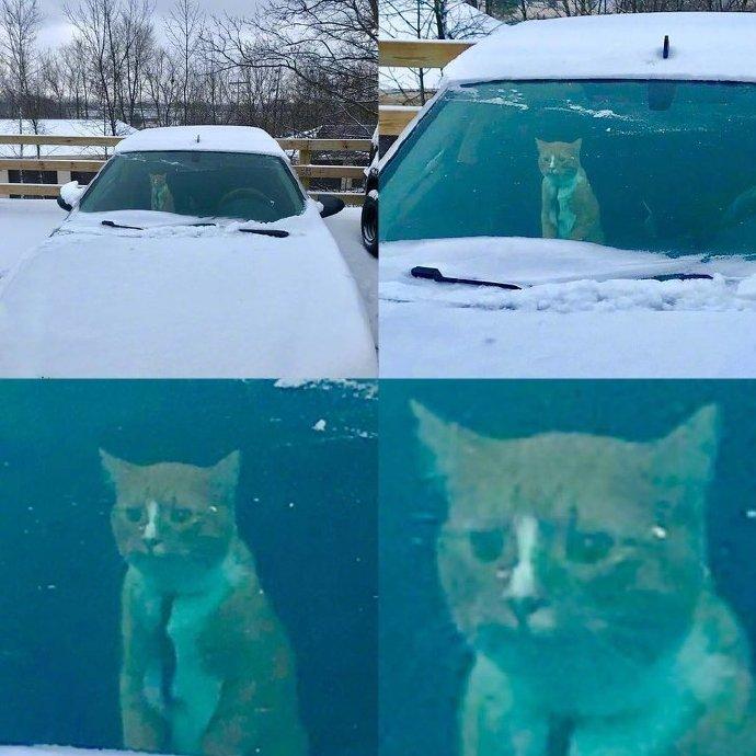 下雪后铲屎官出来遛猫,这天走着走着,猫咪突然跳到了树上,原来……