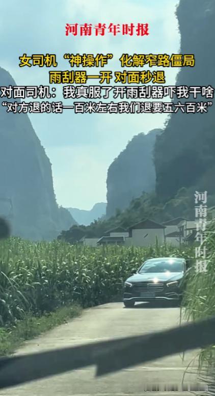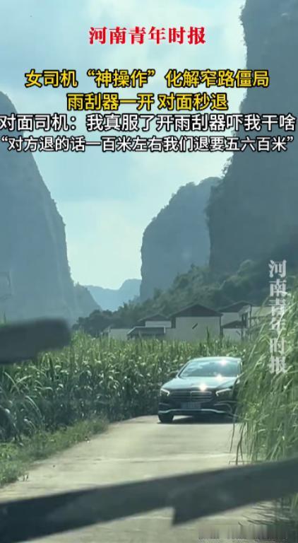 “人怎么能这么聪明!”10月12日,广西,一女子带着朋友在乡间小路上行驶,谁知前方却突然出现了一辆奔驰车,因为她们倒车回去要五六百米,所以女子灵机一动,直接打开了雨刮器装成“马路杀手”,果然对面的司机看到这一幕立刻就开始倒车!网友:对面司机要被吓坏了。 当天女子和朋友行驶在一条较为狭窄的乡间道路上,路面并不宽敞,勉强只能容得下一辆车的通过,就在她们继续前行的时候,前方突然出现了一辆黑色的奔驰车。 当两辆车在这样狭窄的道路上相遇,就不得不面对一个尴尬的局面:为了避免碰撞,其中一辆车必须倒车。 但情况却并不简单,女子的车技并不娴熟,而且她所在的位置要倒回去大约有五六百米的距离,相对来说,奔驰车的车主可能只需要倒车约100米就能找到合适的地方让路。 可问题是,女子并不确定对方是否会听从她的指引,毕竟奔驰车是一辆价值不菲的豪车,车主很可能是一个经验丰富的老司机。 就在她一时无计可施的时候,灵机一动,她决定采取一种非常“机智”的方式来打破僵局,她一边看着奔驰车,一边急中生智地打开了雨刮器,装作一副手忙脚乱的样子。 她试图通过这种不经意的动作给对方一个信号:她似乎是个新手司机,可能会出现一些操作上的失误,需要对方理解和配合。 果然看到这一幕,奔驰车的司机并没有继续向前,而是立即选择了倒车,女子看到这一幕,心中不禁松了一口气,同时也忍不住和朋友笑了起来。 这种“女司机”的刻板印象竟然在某种程度上起到了意想不到的作用,奔驰车主显然明白,眼前的这位司机可能不是很擅长倒车,因此他不得不做出反应。 这种情形无疑让人想起了许多关于“女司机”的段子和笑话,事实上,很多时候,女司机在开车过程中遇到困难时,可能会无意间做出一些不经意的举动,例如把雨刮器当作转向灯使用。 虽然这些行为并不代表所有女性司机的水平,但它们在一些人的眼中,确实成为了对“女司机”形象的一种特殊注解。 然而实际上,这种刻板印象并不完全公正,无论男女司机,在面对突发状况时,都会产生紧张情绪并做出一些偶尔失误的反应。 正如那位奔驰车主,他在看到女子操作失误时,可能并没有因为对方是女司机而作出反应,而是更基于对路况的判断,觉得让她倒车可能会更耗时,于是选择了倒车让行。 这种微妙的情节,让人不禁思考,司机在面对交通中的困境时,不同的反应其实往往与性别并无太大关系。 更重要的是,如何在复杂的交通环境中,合理地判断形势并采取恰当的应对措施,无论是男性司机还是女性司机,实际操作能力才是判断一个司机是否称职的真正标准。 那一刻,女子和她的朋友在车内笑得很开心,但她们的笑声并不是因为对方倒车的决定,而是因为她们无意间利用了社会对“女司机”这一刻板印象所产生的反应。 她们知道,尽管这一切看似轻松搞笑,但背后反映的却是一个更深刻的问题——社会如何通过一些标签化的看法,影响我们对他人的行为和反应。 回到那条小路上,这个看似巧妙的举动,也给了我们一个启示:在现实生活中,人们的行为往往受到多方面因素的影响,包括情境、经验、甚至是文化上的偏见。 当我们面对困境时,能够灵活应对,找到最适合当时情况的办法,往往会带来意想不到的结果。 总的来说,这件事情虽然看似只是一次简单的交通小插曲,但它却在某种程度上揭示了社会对女性司机的刻板印象以及人们在紧急情况下的反应模式。 无论是女司机还是男司机,在道路上最需要的是彼此的理解与宽容,而非过多的标签化评判。 对于这件事情,大家有什么看法? 信息来源:《女司机“神操作”化解窄路僵局,雨刮器一开,对面秒退,对面司机:我真服了开雨刮器吓我干啥》河南广播电视台