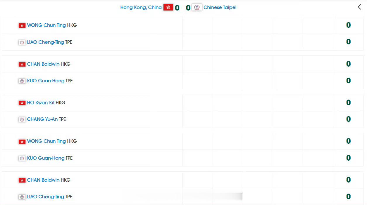 亚锦赛男团中国香港vs中国台北