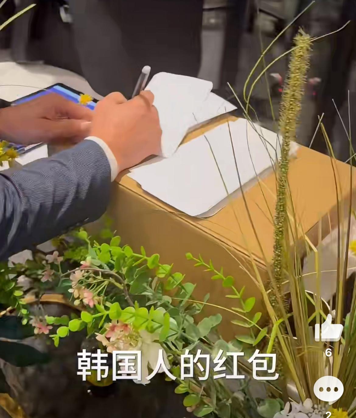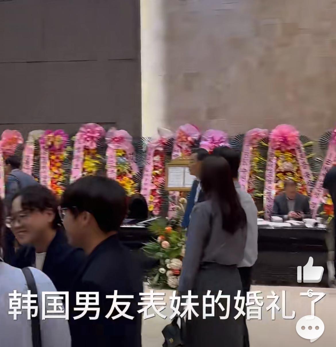 网友第一次参加韩国人的婚礼,怎么看起来像葬礼。门口摆满花圈,送的是花圈,排队给礼