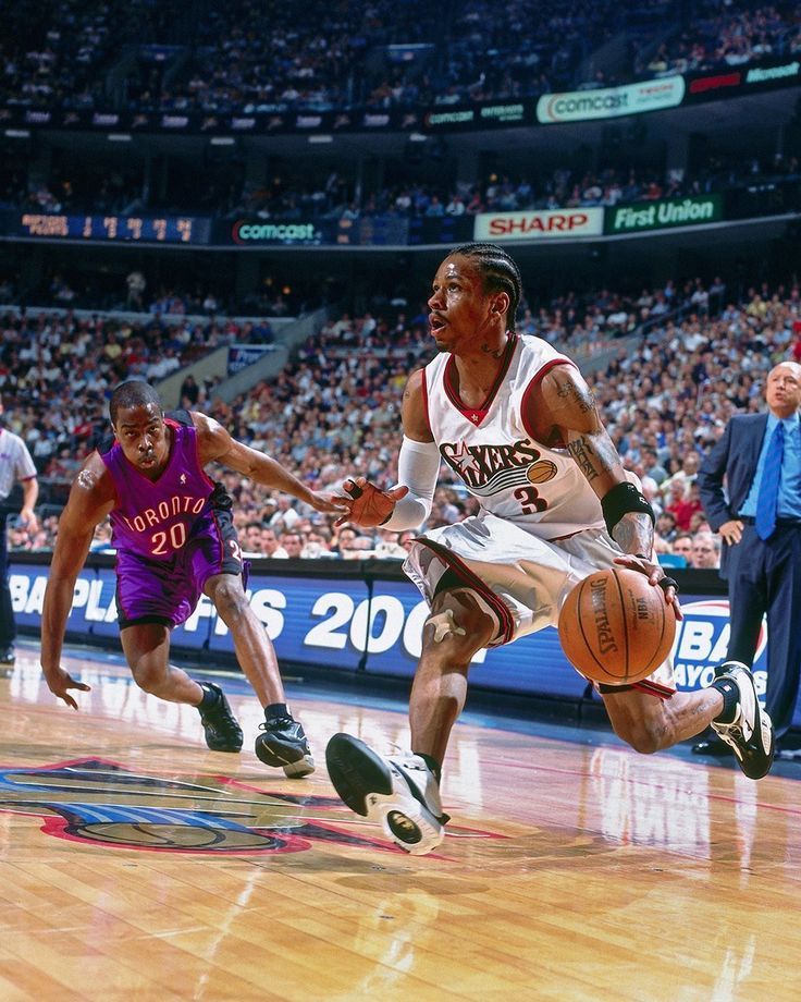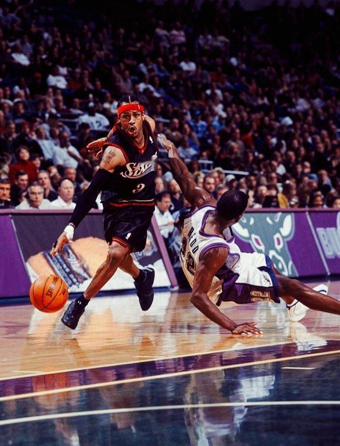 老照片组图,运球过人的艾弗森赛场照。我的观赛搭子