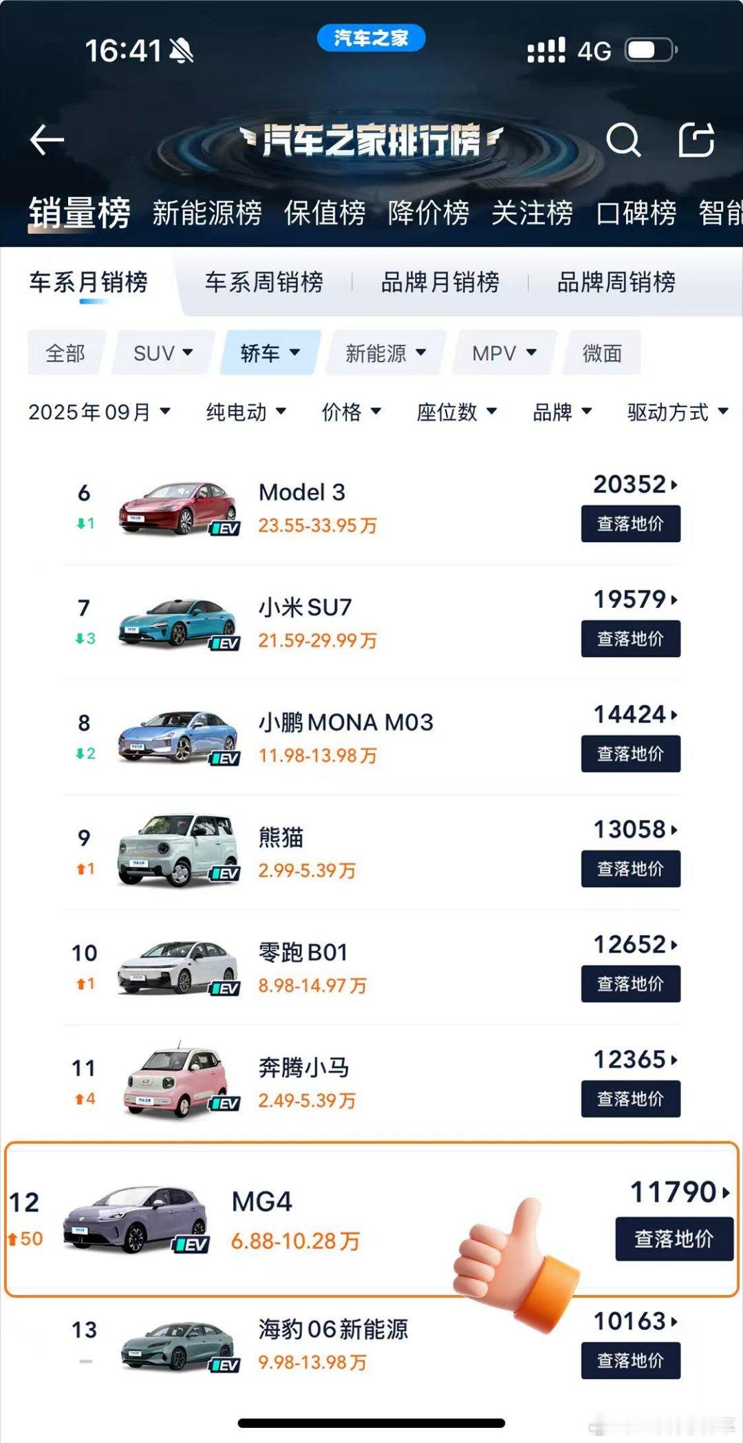 全新MG4 上市首月卖出11790辆,进入纯电轿车销量TOP 12,于MG而言,这是漂亮的成绩单!