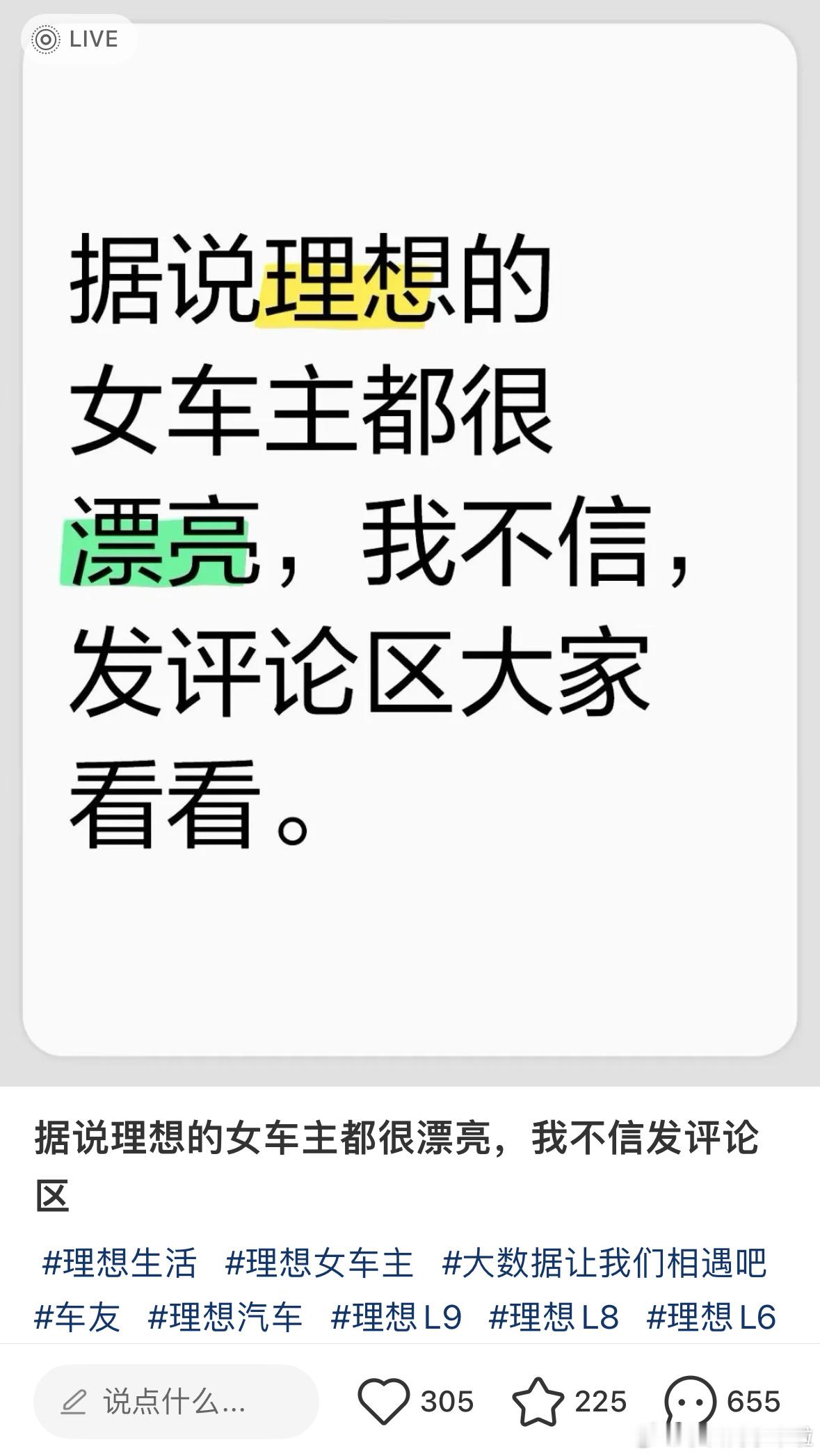 刷到图一这个话题,好奇就去评论区看了下,理想女车主颜值确实也挺能打的[二哈]